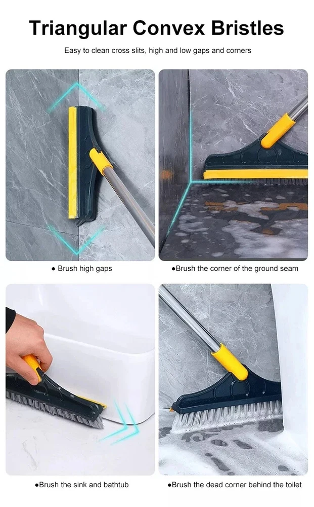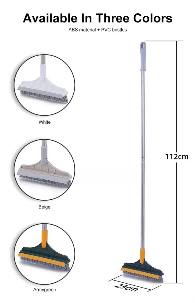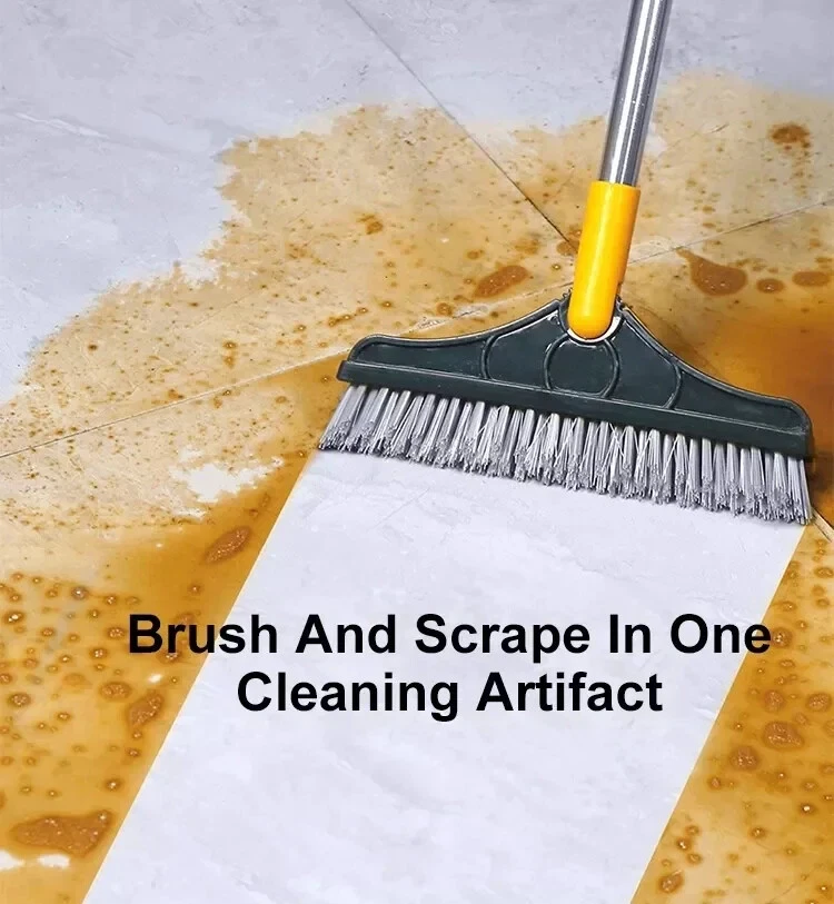 Household Cleaning Brush Floor Scrub Bathroom Cleaning Tools Silicone Scraper Toilet Brush Rotary Brush for Cleaning Tile Tools 【2 in 1 Floor Scrub Brush】 This is a magic broom brush comes in 2 in 1 function that is floor scrub brush and scrape. Floor Scrubber with Squeegee. its stiff bristles is used for scrubing the floor, after brushing the floor, you can easily scrape off the sewage with the rubber squeegee. If satisfied with our products,kindly leave a 5-star rating and share with your friends. If you have any questions, please feel free to contact us.thank you