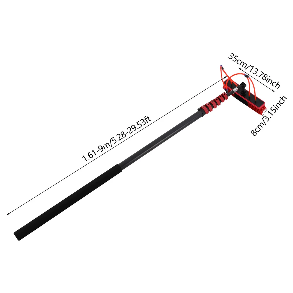 Cleaning Brush Kit for Solar Panel, Window Cleaning Equipment, Window Cleaning Description If you are still worried about high-altitude cleaning, then our window cleaning pole kit is designed to solve your troubles. High-class materials make it sturdy and durable. The length of the pole can be adjusted, meeting cleaning needs at different heights. Its brush head can rotate 180 °, making it convenient for you to use. In short, it will be your cleaning assistant! Key Features Build to Last: Made of aluminum alloy, this product is impact-resistant , rust-resistant , and durable, ensuring your long-term use. Rotatable Design: The brush head with four water outlets can rotate 180° , allowing you to clean up easily the dust and stains in every corner or uneven surface . Adjustable Length: The length of the pole can be adjusted between 5.77-35.43 ft/5.28-29.53 ft/4.99-23.62 ft, meeting cleaning needs at different heights such as taller windows and facades. You can do many high-place cleaning tasks without ladders just with extension and retraction by adjustable clamps. Easy to Assemble: The simple structure, complete accessories, and English manual allow you to quickly assemble and connect this product and enjoy the joy of assembly. Comfortable User Experience: The rubber cotton handle provides you with a comfortable grip, so you won't feel tired even after prolonged use. Simple Cleaning: It has a smooth surface and a simple structure, so you only need to wipe the dust or residue with a towel after use. Ideal Gift: This practical product will be a wonderful surprise for your family or friends who often do cleaning work , bringing convenience to their work. Buy with Confidence: We are honored that you have chosen our product. We have sufficient confidence in the quality of the product so that you can buy it confidently. But if you have any questions, you can contact our customer service, he will patiently answer and solve your problems. Details Water Pipe: The 65.62 ft water pipe easily meets the flush cleaning needs at different heights. Detachable Brush Head: It allows for easy replacement at any time, which is convenient and user-friendly. Soft PP bristles help you clean more evenly and cleanly. Application It is suitable for house roof cleaning, solar photovoltaic panel cleaning, and cleaning cars, trucks, vans, windows, boats, decks, etc. Specifications Color: Black, Red Material: Aluminum Alloy, Rubber Cotton, PP Assembly Required: Yes Adjustable Brush Head Angle: 180 ° Brush Head Size: 35*8cm/13.78*3.15in Water Pipe Length: 20m/65.62ft JKEJEI-000200: Adjustable Pole Length Range: 1.76-10.8m/5.77-35.43ft Package Size: 176*11*14cm/69.29*4.33*5.51in Gross Weight: 5kg/11.02lbs Net Weight: 4kg/8.82lbs JKEJEI-000600: Adjustable Pole Length Range: 1.61-9m/5.28-29.53ft Package Size: 161*11*14cm/63.39*4.33*5.51in Gross Weight: 4kg/8.82lbs Net Weight: 3kg/6.61lbs JKEJEI-000700: Adjustable Pole Length Range: 1.52-7.2m/4.99-23.62ft Package Size: 155*11*14cm/61.02*4.33*5.51in Gross Weight: 3kg/6.61lbs Net Weight: 2kg/4.41lbs Package Included 1* Window Cleaning Pole 1* Brush Head 1* English Manual 1* Water Pipe Other Accessories for Assembly Notes Please read the English manual carefully when installing. Please allow the slight color difference caused by the shooting light and 1-3cm error due to manual measurement, and make sure you do not mind before you order. Payment Delivery details Terms of sales About us Contact us Payment We accept ebay payment 。 Fees such as import duties, taxes are not included in the item price or shipping costs. These charges are the buyer's responsibility. Delivery details Shipping: 2-9 working days to: USA Terms of sales We maintain high standards of excellence and strive for hundred percent customer satisfaction. Feedback is very important to us. We hope that you contact us immediately before you give neutral or negative feedback, so that we can address your concerns. It is impossible to address issues if we do not know about them! About us Your satis faction is our ultimate goal. We work hard to earn your trust and future business. Our certified technicians have tested each item before shipping. The unit comes with 1 year limited warranty on all manufacturing defects. a) If you receive a defective item, you may return it or ask for a discount. Please contact us within 14 days after you receive the package. b) What you returned must be intact and in its original packaging as re? u. Customer is responsible for shipping costs of the returned item. c) We will cover the cost of shipping back t with the shipping rate indicated in the registration page. We will send you a new unit or refund the full payment you paid. Thank you. Contact us Business Hour Business Hour: Monday To Friday: 8:30 AM to 5:00 PM (Beijing China time) Due to time zones, our reply to your questions may not be immediately. But within above working time, we will reply your email within 24 hours. If it's non-workdays, please kindly be patient and wait till Monday. Please contact us with ebay message. Please feel free to contact us if you have any questions. Monday To Friday: 8:30 AM to 5:00 PM (Beijing China time) Due to time zones, our reply to your questions may not be immediately. But within above working time, we will reply your email within 24 hours. If it's non-workdays, please kindly be patient and wait till Monday. Please contact us with ebay message. Please feel free to contact us if you have any questions. Brand Unbranded Type Window Cleaning Brush For Windows Material Aluminum Alloy, Rubber Cotton, PP Handle Material Aluminum Alloy Adjustable Brush Head Angle 180 ° Water Pipe Length 20m/65.62ft Brush Head Size 35*8cm/13.78*3.15in