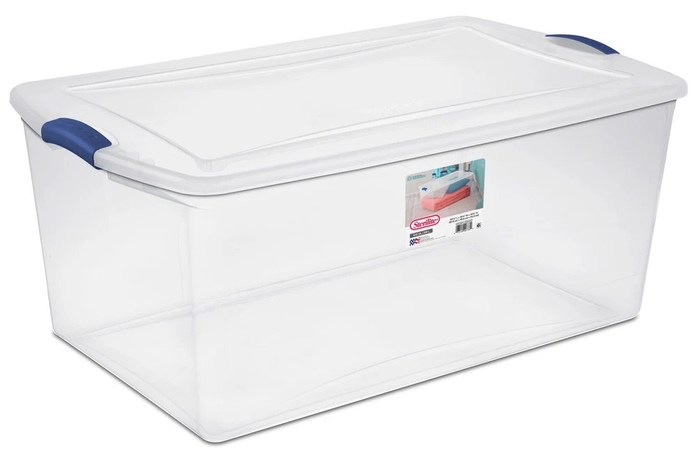 Luxurious Plush Shag Area Rug Soft High Pile Easy Care Modern Home Décor New 75.92 USD Free shipping Large 18 Gal Plastic Storage Bins Set of 8 Stackable Containers W/ Lids New 67.01 USD Free shipping Digital Air Fryer 4.75Qt Compact Low Fat 1400W One Touch Control 7 Presets New 61.22 USD Free shipping Catfish Spinning Fishing Rod Reel Combo Durable Ugly Tech Construction 2 Piece 78.41 USD Free shipping 15-Piece Stainless Steel Kitchen Knife Set W/ Block Shears & Sharpening Steel US 83.11 USD Free shipping 3-Piece Sherpa Comforter Set Full Queen Plush Warm Bedding Shams Easy Care New 64.86 USD Free shipping 5 Tier Steel Shelving Unit Adjustable Wire Racks Heavy Duty Storage 2500 lb New 106.8 USD Free shipping Avondale 16-Piece Kitchen Knife Set Wood Block Sharp Stainless Steel Blades New 58.63 USD Free shipping Contemporary Rectangular Wood Coffee Table Storage Organizer W/ Drawer Bins New 63.36 USD Free shipping 12 Piece Dinnerware Set Ceramic Plates Bowls Service 4 Microwave Dishwasher Safe 59.9 USD Free shipping 55 Qt High Performance Cooler Heavy Duty Ice Retention Portable Outdoor New 130.8 USD Free shipping Modern Contemporary 2-Door Buffet Cabinet W/ 2 Drawers Kitchen Storage New 131.51 USD Free shipping The 105-qt Latch Box Stadium Blue, Single is an ideal storage solution for larger items or to store multiple items in one place. Secure latches keep the lid attached to the base so that items are kept safely inside yet are still easy to get to when they are needed. The clear base and lid of the storage box allow contents to be easily identified from any angle, which is a tremendous help during organization. If you are working with multiple of these boxes, they are able to stack neatly on top of each other to save space. This Latch Box is ideal for storing bedding, camping, sporting equipment and other bulky items. It has a contemporary style and shape. The colorful latches will allow you to have a color-coded system or just add a little bit of color to any space. Overall assembled size: 32-1/8"L x 19-1/8"W x 13-3/4"H Clear lid and base for easy identification of contents from any angle Contemporary styling and shape to provide solutions to a variety of household storage needs latch box has colorful latches to secure the lid to the base, keeping the contents safely stored inside Indexed lids allow for storage boxes to stack neatly on one another Available in a 4-count and a single You may also like 5-Piece Softside Luggage Set Rolling Duffel Tote Toiletry Kit Spinner Wheels New 94.38 USD Free shipping Bread Storage Container Plastic Keeper W/ Lid Durable Freshness Solution New 8.43 USD Free shipping Tall Pantry Cabinet W/ 4 Doors Adjustable Shelves Large Drawer Storage Furniture 179.98 USD Free shipping 8-inch Wood & Poly Shrub Leaf Rake Eucalyptus Handle Lawn and Garden Cleaning 12.21 USD Free shipping 18 Gallon Plastic Storage Bins W/ Snap-on Lids Stackable Tote Pack of 8 New 46.88 USD Free shipping Kids Outdoor Wooden Sandbox Cedar Wood W/ Foldable Benches Cover Liner New 168.99 USD Free shipping Arca Swiss Rifle Saddle Mount Tripod Clamp Quick Release Plate Shooting Rest New 49.39 USD Free shipping 6 Piece Stainless Steel Stock Pot Set Durable Heat Conducting Easy Storage New 50.15 USD Free shipping Aluminum Cleaner & Restorer Boats Canoes Unpainted Metal Oxidation Removal New 29.0 USD Free shipping 30in Spinning Rod Reel Combo Fiberglass Durable Push Button Fishing Equipment US 15.47 USD Free shipping 6 Gallon Camping Water Storage Container 2 Pack Portable Heavy Duty Jug New 36.86 USD Free shipping 32 Piece Combination Wrench Set Metric SAE Durable Chrome Vanadium Storage Case 27.13 USD Free shipping