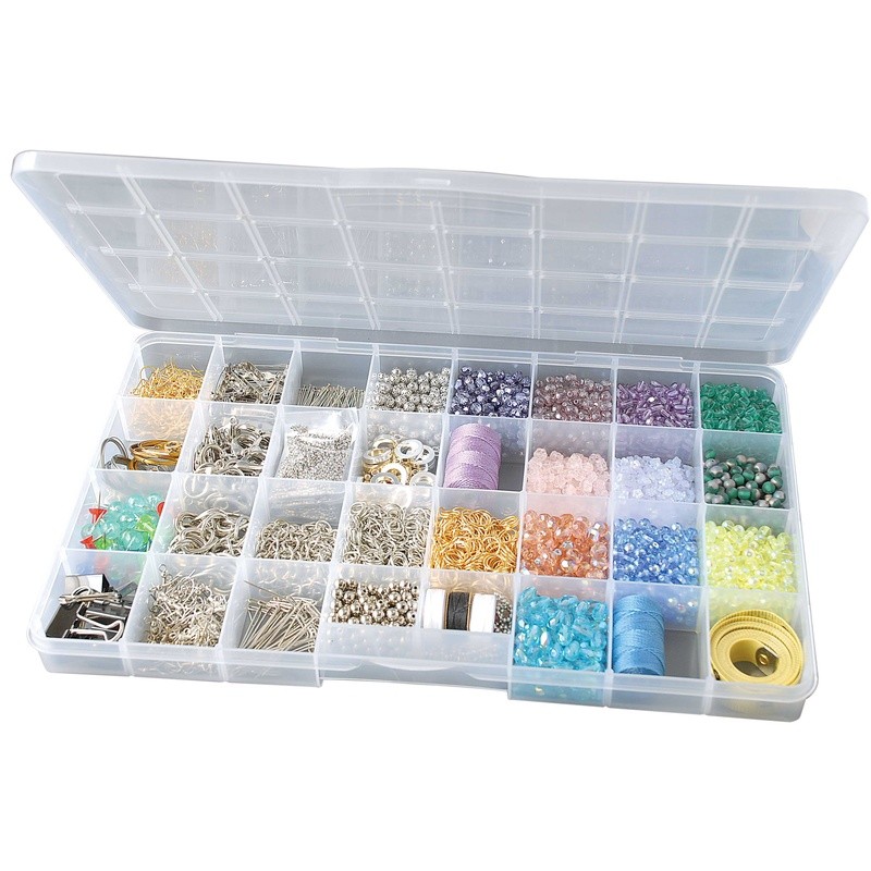 Clear 32-Compartment Plastic Bead Storage Box for Craft Supplies