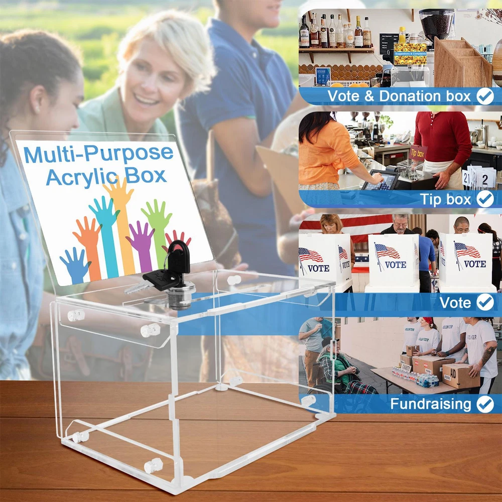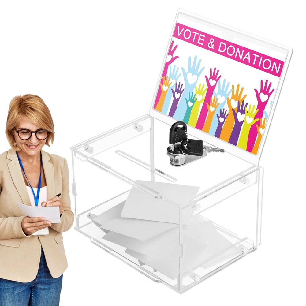 Clear Acrylic Donation Box Ballot Box Charity Box With Lock And Keys