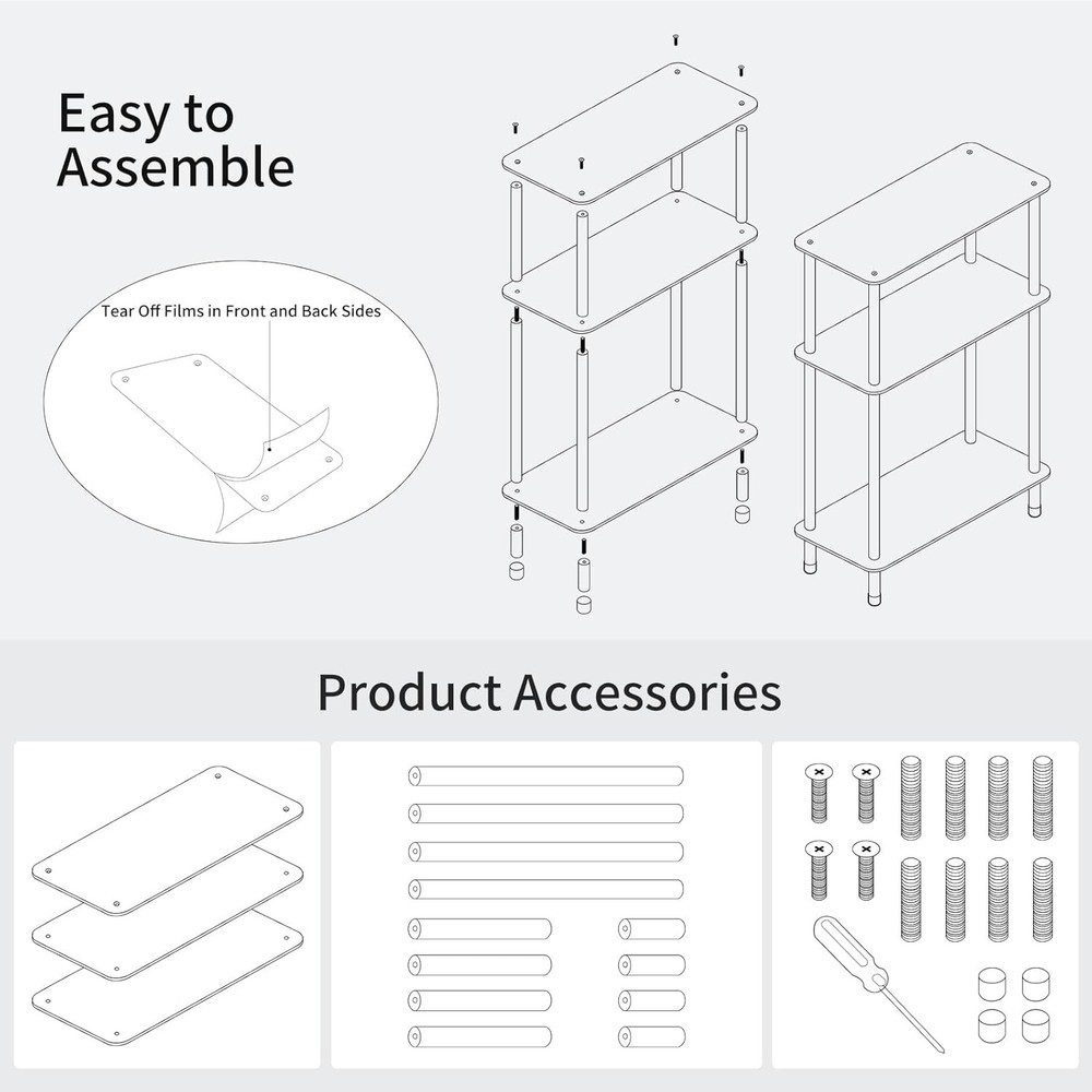 Clear Acrylic Narrow Side Table for Small Spaces, 15.7" 3 Tier 1 Pack, Product Details Brand: Bkemiy Product Dimensions: 15.7"D x 7.87"W x 24.6"H Color: Clear Product Care Instructions: Wipe with Dry Cloth Table design: End Table Item WeightFrame Material: 5.1 PoundsAcrylic Top Material TypeShape: AcrylicRectangular 【Narrow Acrylic Side Table 3 Tier】The clear rectangle narrow end table is made of acrylic material which is smooth, transparent, high-strength, durable, lightweight, and easy to clean. The slim nightstand table can hold up to 40 lbs. 【Large Capacity for Small Space】The acrylic narrow bed side table size measures 15.7" L x 7.87" W x 24.6" H. The 3 ties frame design for the bedside table enhances storage capacity without taking up a lot of floor space. 【Minimalist Modern Style】This stylish clear acrylic narrow night stand can effortlessly blend in with your home decor. The round edges of the small narrow nightstand table are structured smoothly for your safety use. There are 4 anti-slip silicone leg caps in the bottom to avoid to damage your floor. 【Easy to Assemble】You can assemble the 3 tier clear acrylic narrow side table in a short time. You just need to follow the drawing instructions to install. 【Multifunctional Narrow Acrylic Table】This 3 tier modern small acrylic narrow table can be used as a small sofa or bed side table, night stand, coffee table, accent table or as a home decoration end table. You can put it in the living room, bedroom, bathroom, garden, kitchen, office and any place you like.