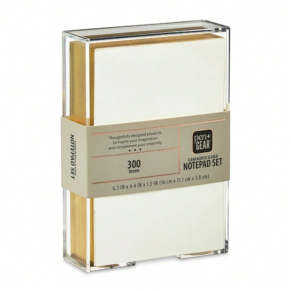 Clear Acrylic Notepad Set with Gold Trim - 300 Sheets