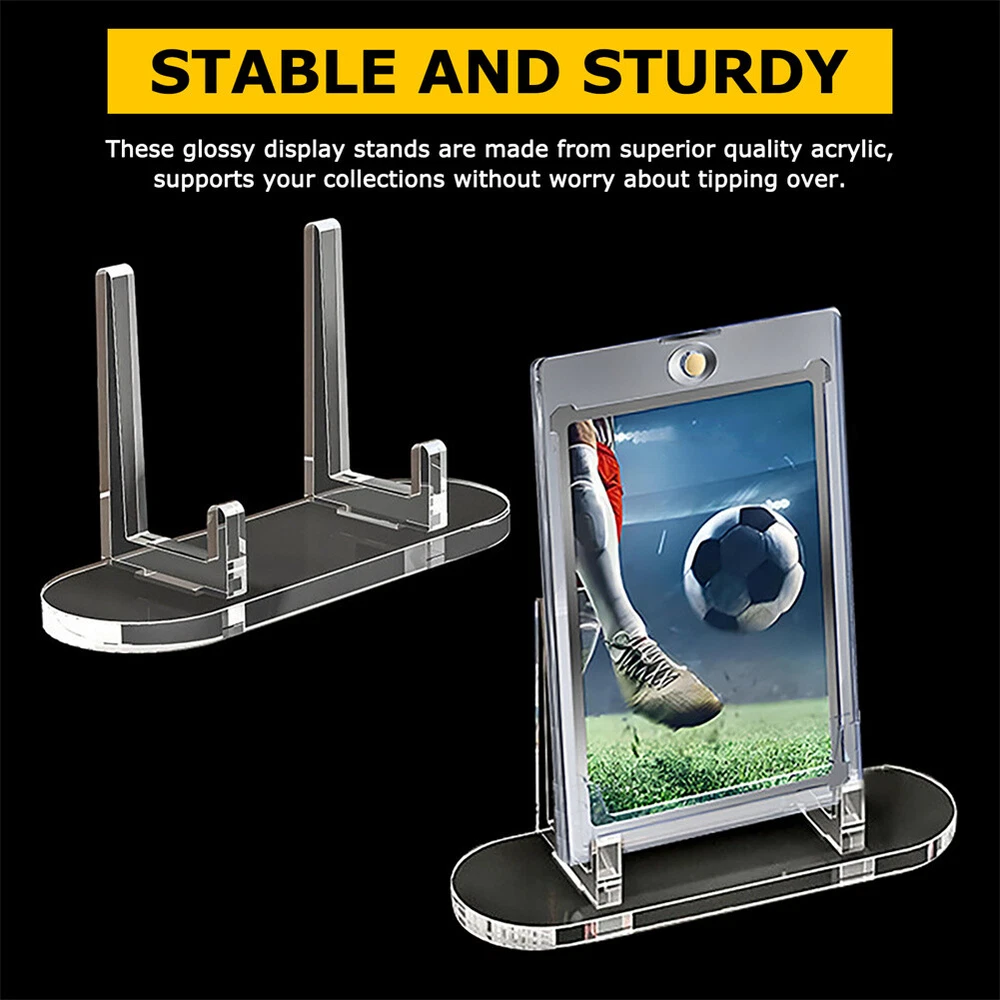 Product Description Features: Display Your Collection: The card display stands work well in displaying various items, such as sports cards, graded cards, trading cards, baseball cards, football cards, gaming card, challenge coin, medal and more. PSA Graded Card Display Stand: These card slab display stands measure 3.9 x 1.37 x 2.08 inches (9.8 x 3.5 x5.3 cm). The width of the groove of card holder is 0.63 inch. Fits PSA cards, SGC cards, BGS cards (0.378 inch), Magnetic Card Holders, Top loaders and more. Premium Quality Trading Card Holder: These glossy display stands are made from superior quality acrylic. Stable and sturdy, supports your collections without worry about tipping over Super Clear: Thick and super clear acrylic display stand. Sleek & minimal design to add a premium aesthetic to your collection. Card Stands application: Great for displaying collections in home, offices, exhibition halls, art classes, bookstores, shopping windows. Specification : Material : Acrylic Color: Transparent Size : 3.9 x 1.37 x 2.08 inches (9.8 x 3.5 x5.3 cm) Package included: 1 x Acrylic Trading Card Display Stand