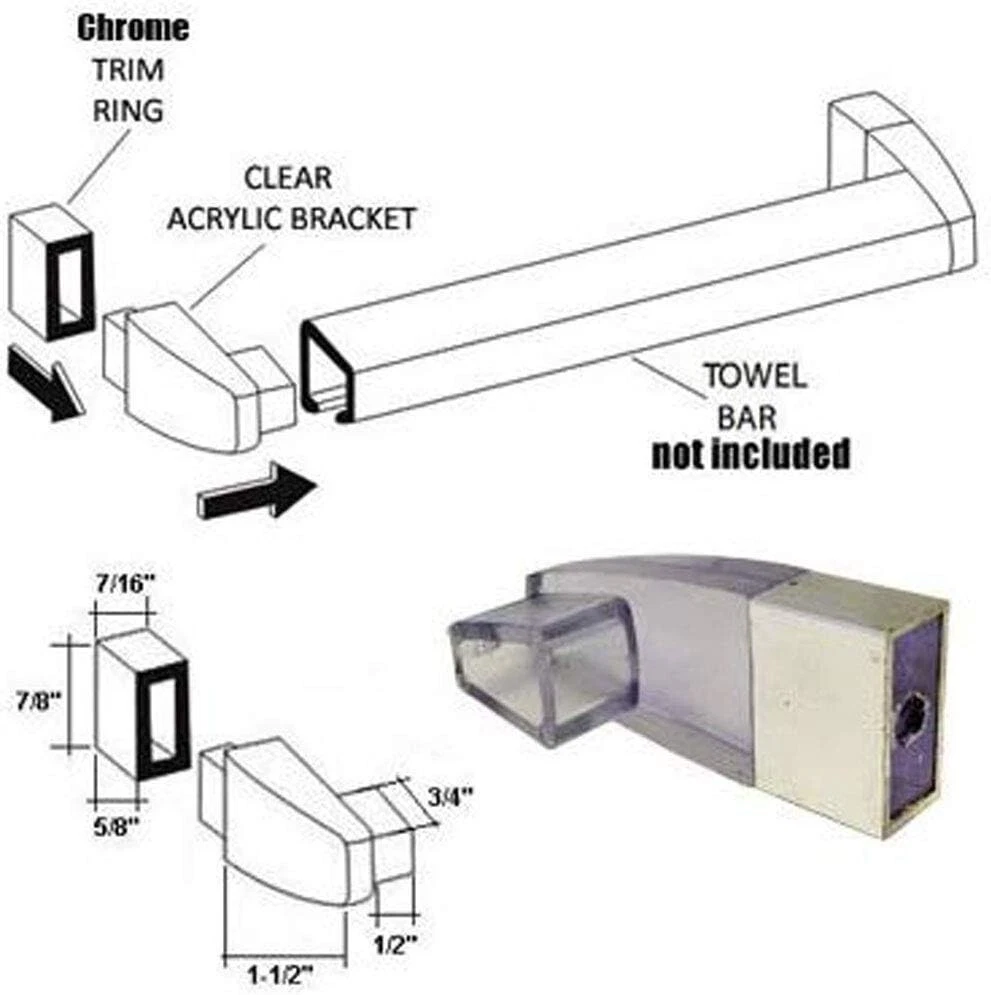 Chrome Acrylic Towel Bar Brackets with Brushed Nickel Sleeve Clear Acrylic Towel Bar Brackets with Bright Chrome Sleeve for framed sliding shower door towel bar. Bracket: Clear Acrylic Sleeve Finish: Brushed Nickel Includes: Two Clear Acrylic Brackets, Two Trim Rings (Sleeves) and Two Screws. Towel bar is not included. *International shipping is available. Please contact us for international shipping charges.* * By placing an order with LK Technologies, Inc. through eBay, you acknowledge and agree to the following conditions: PAYMENT POLICY - TechnologyLK accepts major credit cards via PayPal. We also accept Cashier's Checks and Bank Wire Transfers. Other payment options may be available - please contact us with any questions. - PayPal payments absolutely must have a CONFIRMED shipping address; we will not change, alter or ship to an address other than that verified by PayPal and present on the eBay order. RETURN POLICY - All returns must be authorized prior to shipment; you can obtain an RMA number by contacting us directly, or by Requesting a Return through eBay's Return Center. - Please specify the reason for the return. All return requests are permitted within 15 (fifteen) calendar days from the date of receipt of merchandise. Any return must be shipped within 5 (five) business days from the day it was authorized. - Returned merchandise will be inspected upon receipt and accepted by LK Technologies, Inc. only if the items are in resalable condition. Product packaging must be in like-new condition; products will not be accepted for return if the packaging is cut, torn, written on, or otherwise damaged. Packaging must be in resalable condition in order to receive a refund. All items included with the original shipment must be present with the returned merchandise; this includes, but is not limited to: screws, fasteners, gaskets, instructions, etc. Returns that are missing components, have severely damaged packaging, or have in any way been damaged, deformed, or altered cannot be credited. Any items cut to size, or altered in any way, may not be returned or exchanged for refund or credit. - ***All returns on orders placed under Free Shipping offers will incur shipping charge deduction in addition to standard restocking fees. - Shipping and handling fees are non-refundable. A 15% restocking fee applies to all returns; if you would like to place a new order, of equal or greater value, the restocking fee may be waived, if within the 15 (fifteen) day return period. SHIPPING FEES - Free Shipping Offers apply only within the 48 contiguous states. - Additional shipping charges may apply for orders shipped to Hawaii, Alaska, or Puerto Rico. APO/FPO addressed may also incur additional shipping charges. - USPS is the preferred method of shipment, unless necessary to ship via UPS. If you do not receive Postal deliveries to the shipping address provided, please contact us upon placing your order. If you have a preference of the courier used, please contact us before placing the order. - Expedited shipping is available on some items. Please contact us for a shipping quote for Next Day or Second Day Air. - International shipping is available on some items. Please contact us for a shipping quote. THANK YOU FOR PLACING YOUR ORDER WITH TECHNOLOGYLK! WE APPRECIATE YOUR BUSINESS!