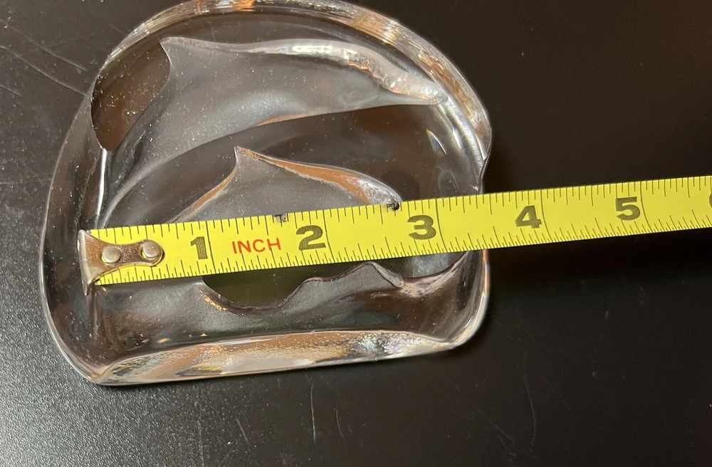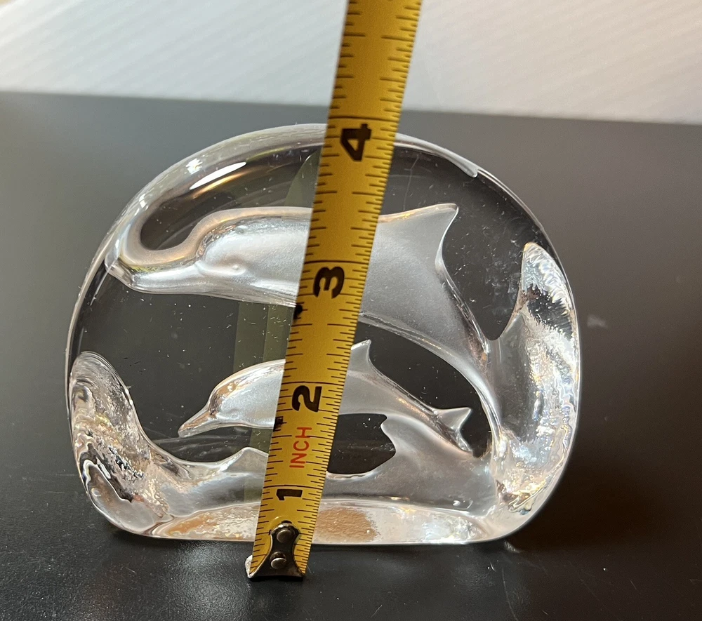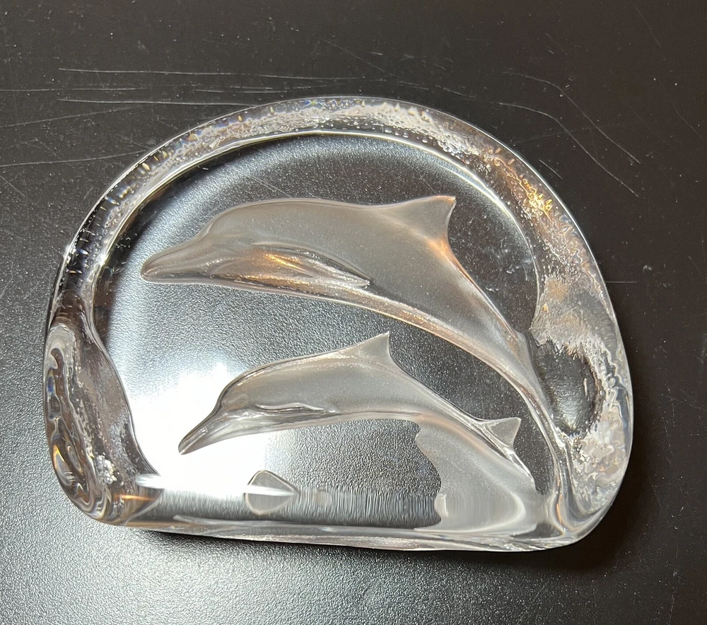 Clear Art Glass Swimming Dolphins Ocean Nautical Paperweight