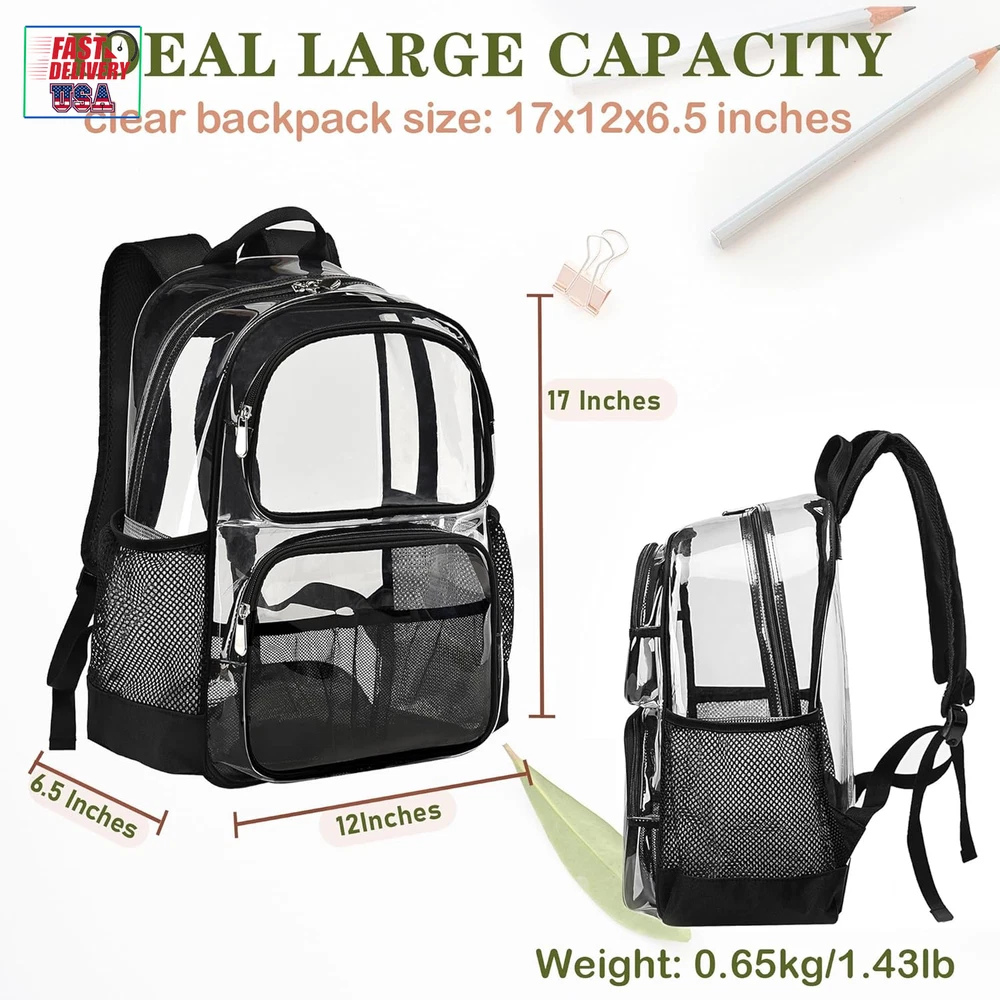 Clear Backpack Heavy Duty,17'' Transparent Bag See through Backpack for College
