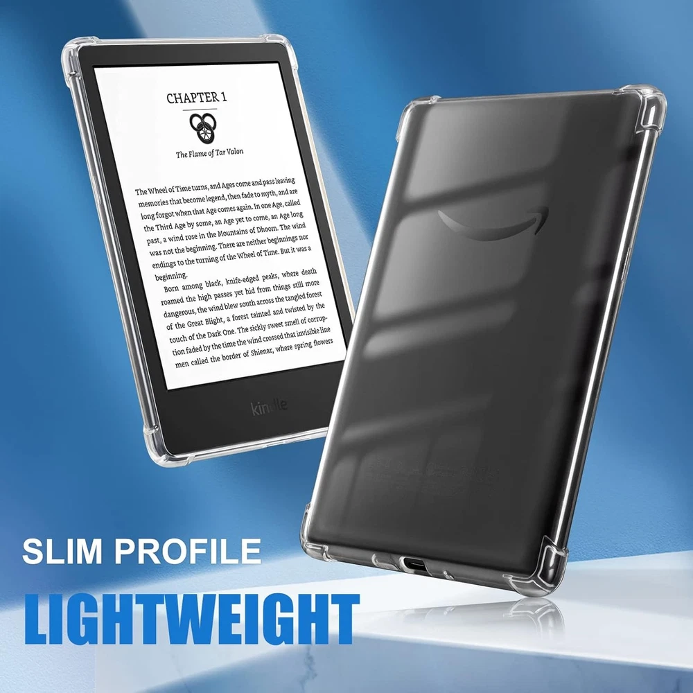 CoBak Clear Case Kindle 2024 and 2022 (11th Generation), Transparent Product Details Product Dimensions: 6.38 x 4.41 x 0.43 inches Item Weight: 1.41 ounces Special features: Slim Fit Other display features: Digital Device Accessory Form Factor: Case Color: Transparent Manufacturer: CoBak Brand: CoBak Compatible Devices: Kindle 2024 and 2022 (11th Generation) Shell Type: Soft Fit: Custom-designed for a perfect fit on the 6-inch Kindle 2024 and 2022 Releases (11th Generation). Important: Compatible exclusively with 6-inch Kindle 2024 and 2022 Releases (11th Generation) Ultra Slim: Minimal added bulk for your Kindle, maintaining its sleek appearance and easy portability. Transparent Design: Our clear, see-through case showcases your Kindle's original aesthetics, while simultaneously providing excellent protection against damage Soft TPU Material: Premium, flexible silicone TPU construction provides excellent protection against daily wear, scratches, and minor drops. Easy Access: Precise cutouts for hassle-free access to all buttons, ports, and features, with a simple snap-on installation process.