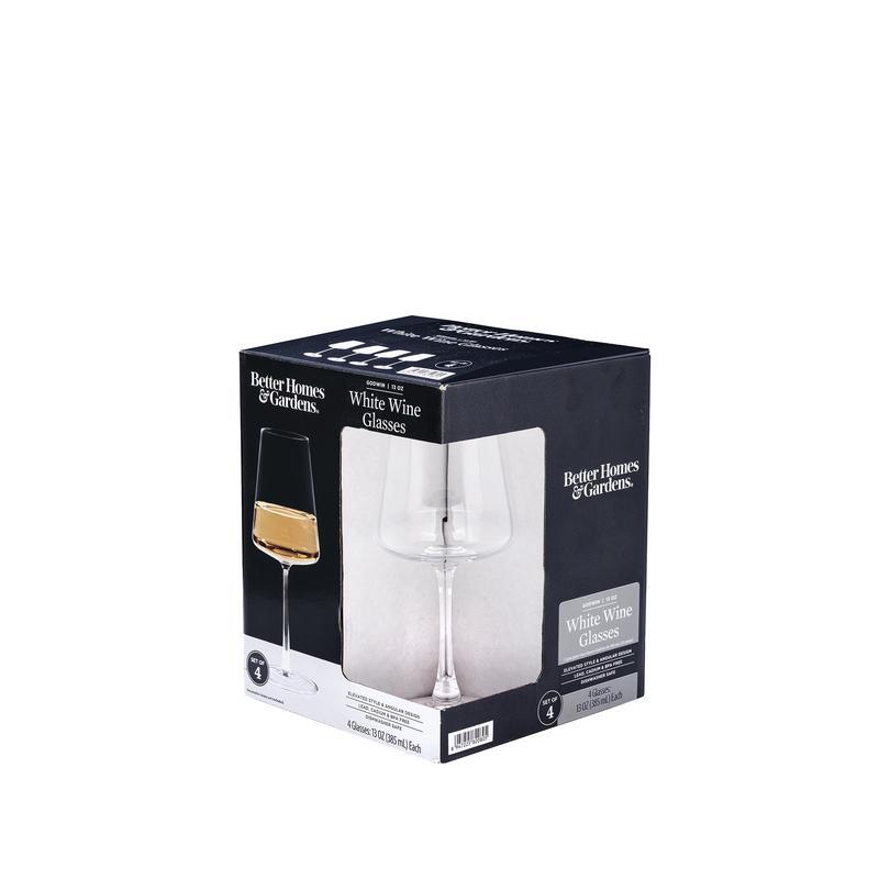 For white wine like chardonnay or pinot grigio, the Better Homes & Gardens Clear Flared White Wine Glass with Stem has a modern twist on the classic white wine glass. The premium glass flared base holds up to 13 ounces while the long stem can be held so the warmth of a hand doesn’t bring up the temperature of chilled white wine. With the four pack of the Better Homes & Gardens Clear Flared White Wine Glass with Stem, you’re sure to have a glass of wine for everyone at your next dinner party. Better Homes & Gardens Clear Flared White Wine Glass with Stem, 4 Pack Flared base adds a touch of contemporary style to a household staple Best for serving for white wine Premium clear glass is durable Holds 13 oz of beverage Cold drinks only Hand wash only Product dimensions: 6. 9inW x 6. 9inD x 8. 5inH Product weight: 2. 2 lbs. Product materials: Soda-lime glass