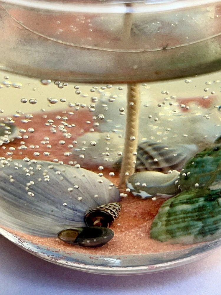 Clear Gel Candle Jar Ocean Beach Sand Seashells Bubbles Atlantis Paradise Island