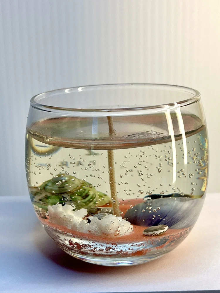 Type: Jar/Container Candle Scent: Unscented Item Height: 2.5” Shape: Ball Item Width: 2.5” Room: All Style: Tropical Brand: Handmade Theme: Novelty, Sea Life, Topographical & Souvenir, Tropical, Nature Color: Clear Size: Small Features: Decorative, Single Wick, Transparent Material: Gel Wax Handmade: Yes