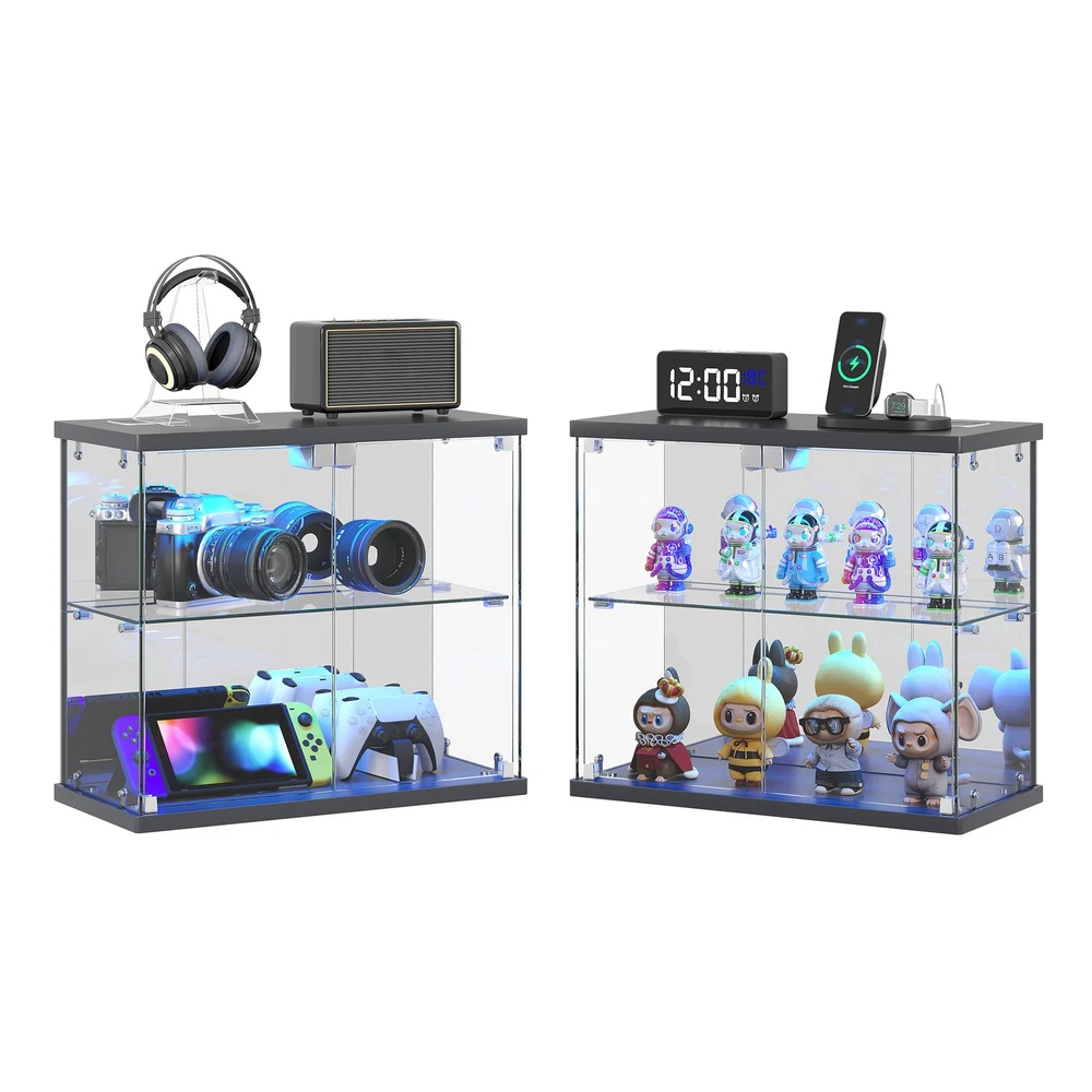$ 36.6Clear Glass Display Case with LED Lights and Charging Station for Figures, Black