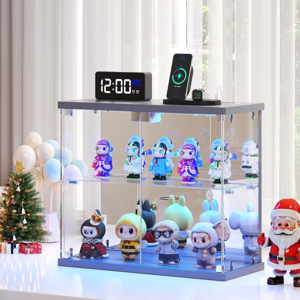 Magnetic Door with Safe Tempered – Featuring a press-to-open design, you can easily access your items with just a gentle push. This display box utilizes explosion-proof tempered glass is both crystal clear and safe. It effectively dustproofs and yellowing resistance that let your small Lego displays, perfumes, toys, or décor can be completely visible Light Control Module with Motion Sensing - This smart showcase upgrades your collection display with built-in LED lights(white, yellow, blue). The human sensor automatically switches the lights on when you approach within 1 meter, and turns them off after 30 seconds, achieving both energy efficiency and a stunning visual display Integrated Charger Station – This display organizer comes equipped with a built-in Type-C and a USB port, enabling simultaneous charging for two devices. Conveniently power your phone, tablet, earbuds, or smartwatch without the need for extra adapters. Keep your essentials fully charged overnight while maintaining a clean, cable-free display surface Mirrored Back Panel – With a mirrored back, this glass display case reflects your collectible figurines, visually expanding the space and adding remarkable depth to each piece. Not only does it brighten the entire display, but it also turns any ordinary space into a dynamic and eye-catching part of your bedroom Easy Assembly with Clear Instructions – Each panel is clearly labeled, and detailed step-by-step guides will walk you through the process. For optimal ease, using power tools is better. Enjoy a creative hour of assembly as a rewarding project with your partner or family Our product frames are all made of FSC-certified wood Lighting for Your Display Charge Hub for Your Desk Tempered Glass: Why It’s Clearly Better Gifts to Display & Delight