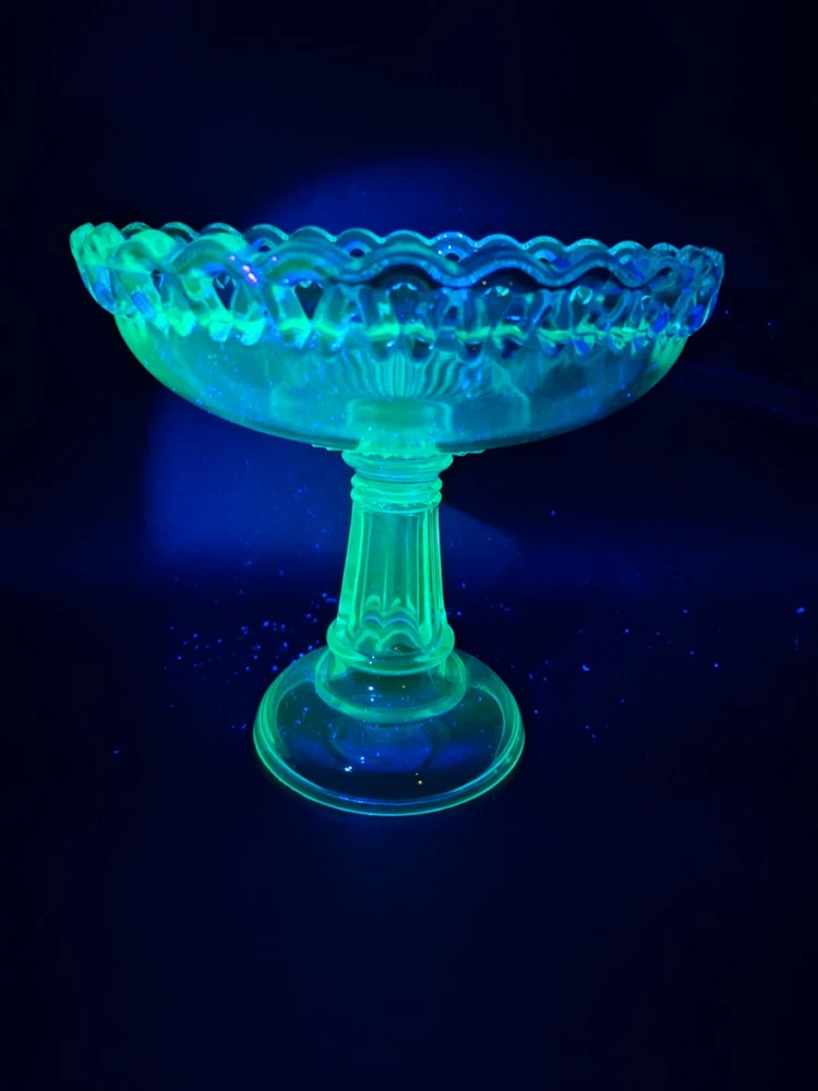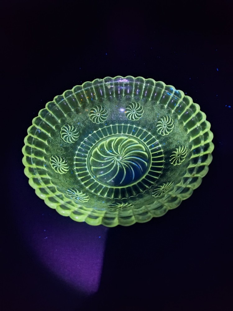 Clear Glass Pinwheel Bowl with Uranium Glass Candy Dish