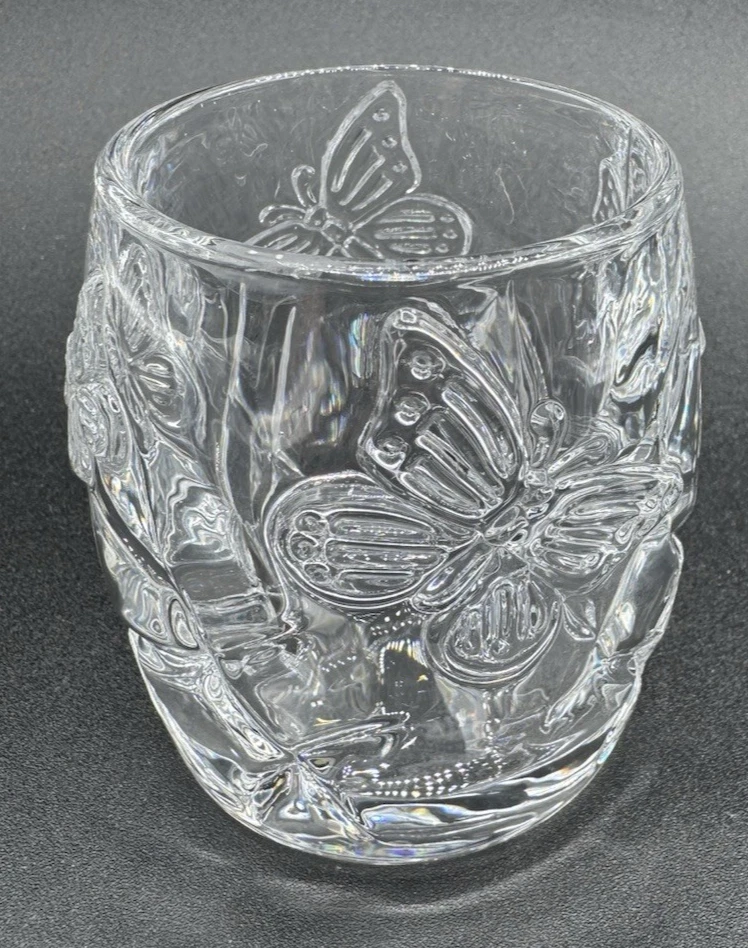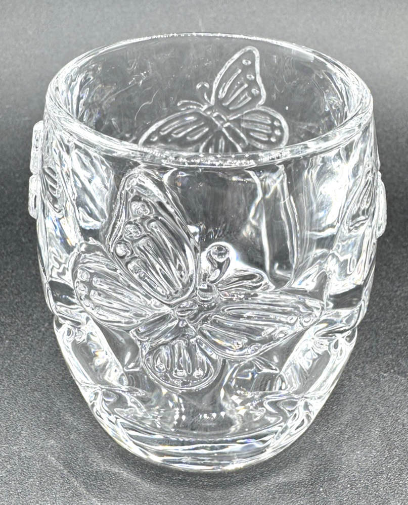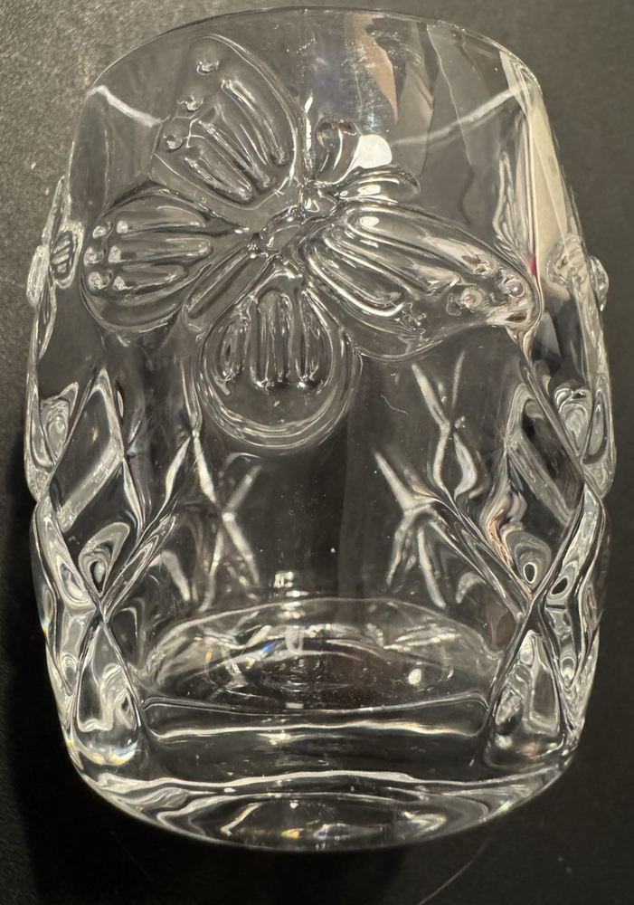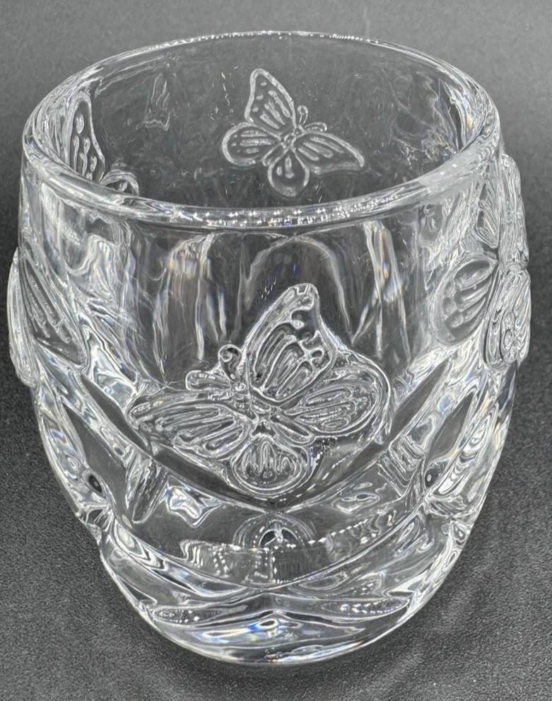 Shape:RoundDepartment:AdultsAntique:NoFeatures:Raised Relief, UnboxedSeller Notes:“no chips or cracks”Brand:UnbrandedPattern:ButterfliesMaterial:GlassPackaging:UnboxedHandmade:NoSubject:ButterflyCare Instructions:Clean with Damp Cloth, Clean with Warm Water, Easy CareCustomized:NoOccasion:All OccasionsColor:ClearStyle:Art DecoRoom:Any RoomAdditional Parts Required:NoType:Candle HolderCountry of Origin:ChinaFinish:GlossyEngraved:NoSize:SmallNumber in Pack:1Item Height:3"