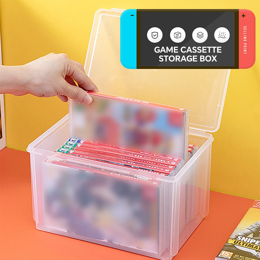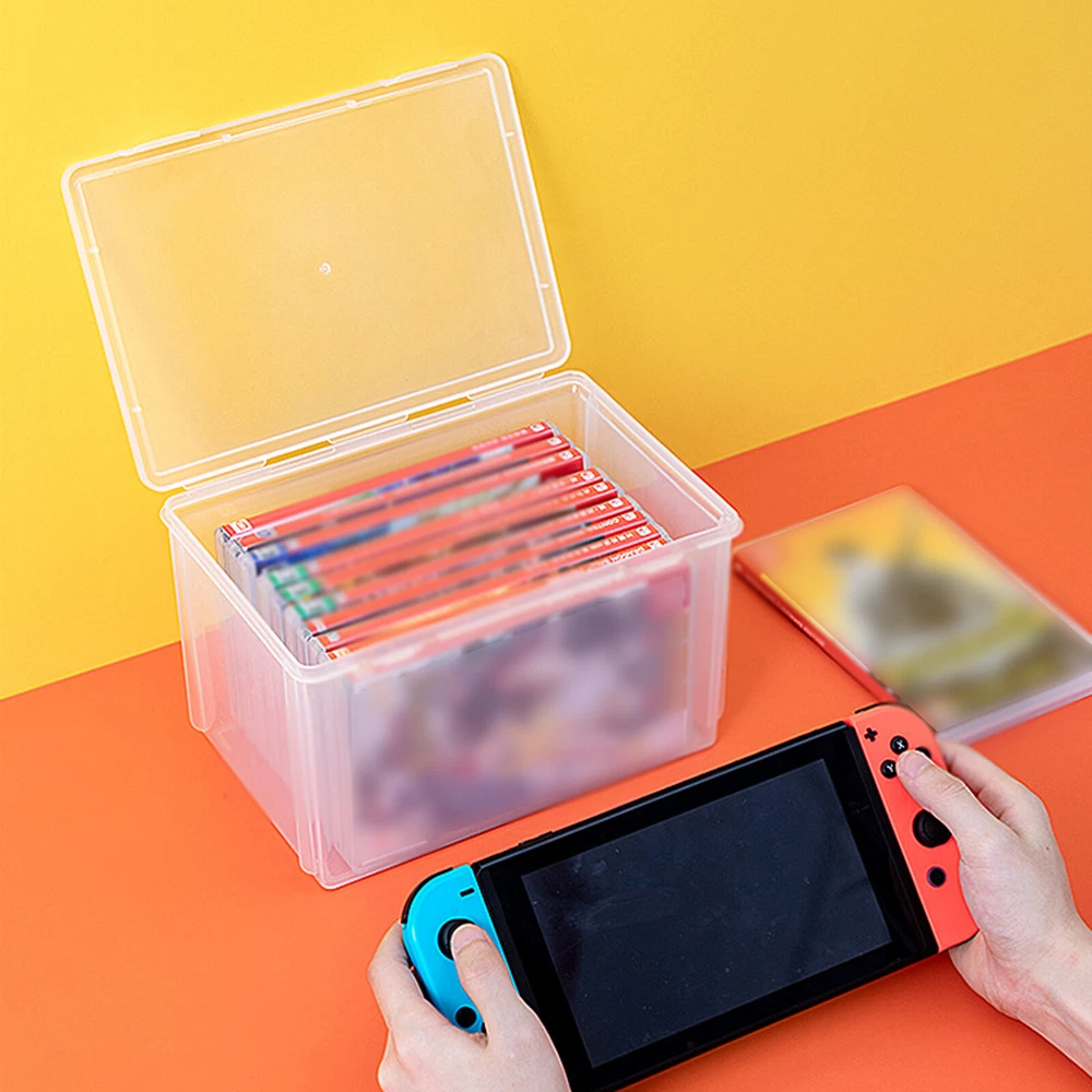 Clear Large Capacity Cassette Game Card Holder Case with Lid Desktop Storage Box