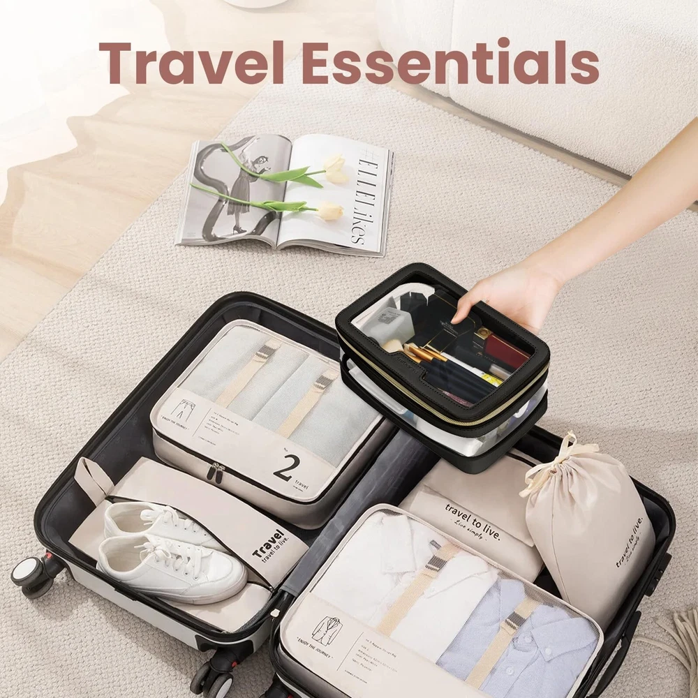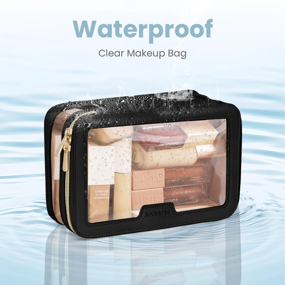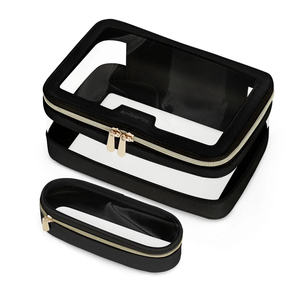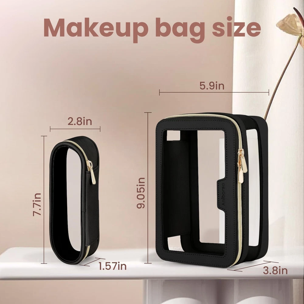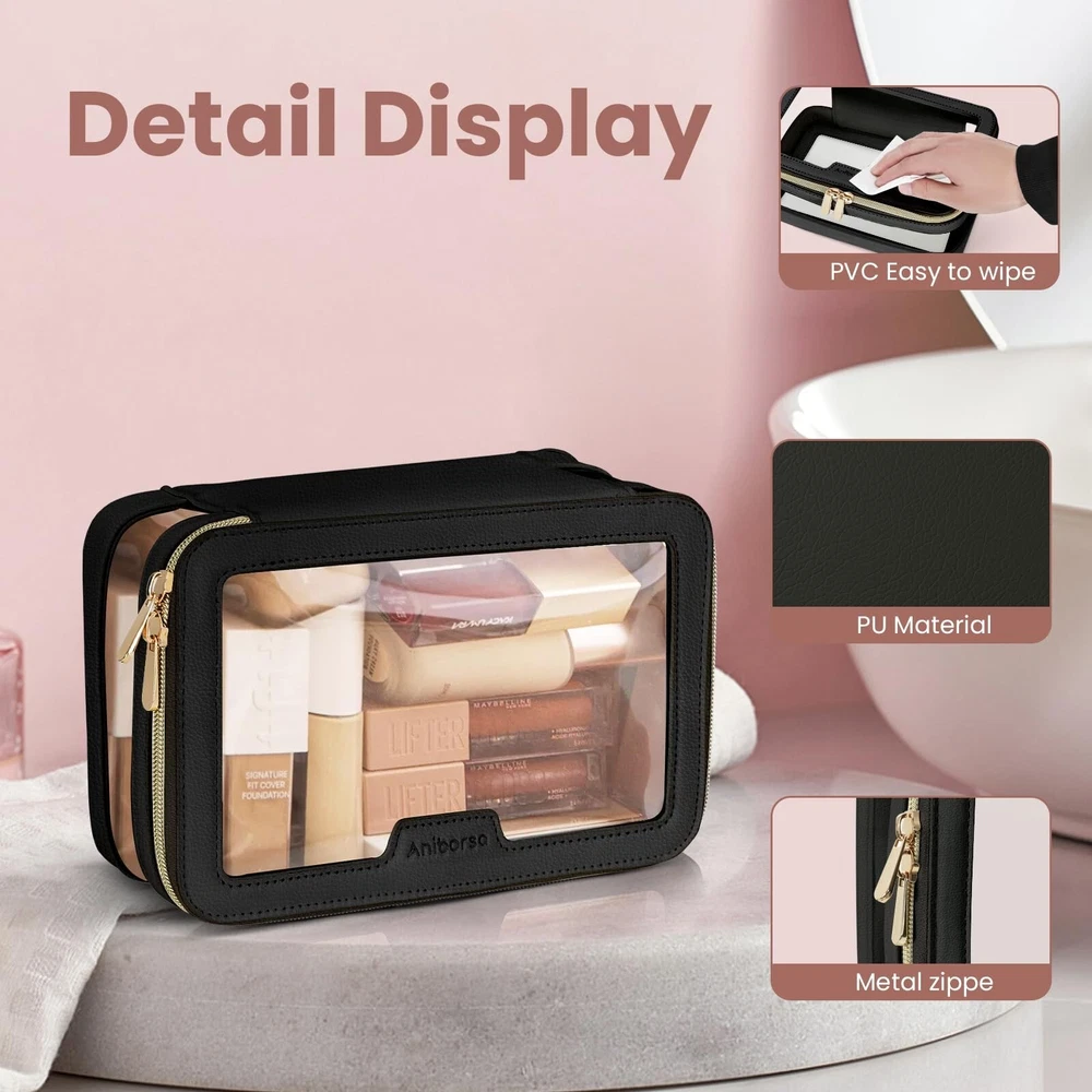 Clear Makeup Bag, Travel Clear Cosmetic Bag and Makeup Brush Bag, Transparent Portable Makeup Case, Waterproof Toiletry Bag with Zipper for Women, Black Product Details Color: Black Brand: Aniborsa MPN: Does not apply UPC: Does not apply EAN: Does not apply Package Dimensions: 9.84 x 6.73 x 4.17 inches Item Weight: 1.1 pounds Department: Womens Country of Origin: China Clear Design for Easy Visibility: This clear makeup bag is made from high-quality transparent material, making it easy to see and access your items. Perfect for cosmetics, toiletries, or travel essentials, it keeps everything organized and visible. Waterproof Protection for Your Essentials: With a waterproof design, this makeup bag ensures your cosmetics and personal items stay dry. Ideal for use in bathrooms, cars, or while traveling, it offers reliable protection from moisture. Metal Zipper & Easy-to-Clean PU Leather: The smooth metal zipper and stylish PU leather exterior make this makeup bag durable and easy to clean. Its perfect for storing cosmetics, toiletries, or accessories. Versatile Storage for Any Occasion: This makeup bag is a must-have organizer for travel, home, or on-the-go. It keeps your makeup, toiletries, and accessories neatly stored and easily accessible in your dressing room, car, or restroom. Perfect Gift for Loved Ones: A practical and stylish gift for mothers, partners, or friends. Ideal for birthdays, holidays, or special occasions, this makeup bag is a functional and thoughtful present that will be appreciated by anyone.