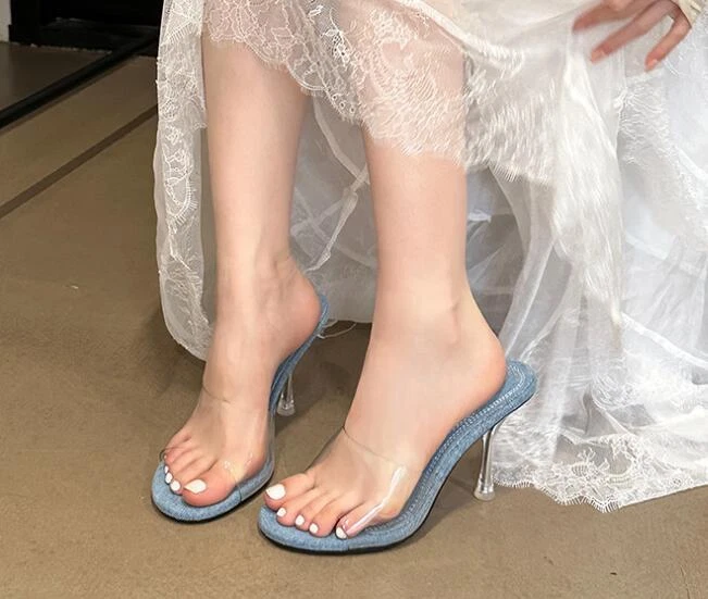 Clear PVC Peep Toe Stiletto Heels for Women Party Fashion