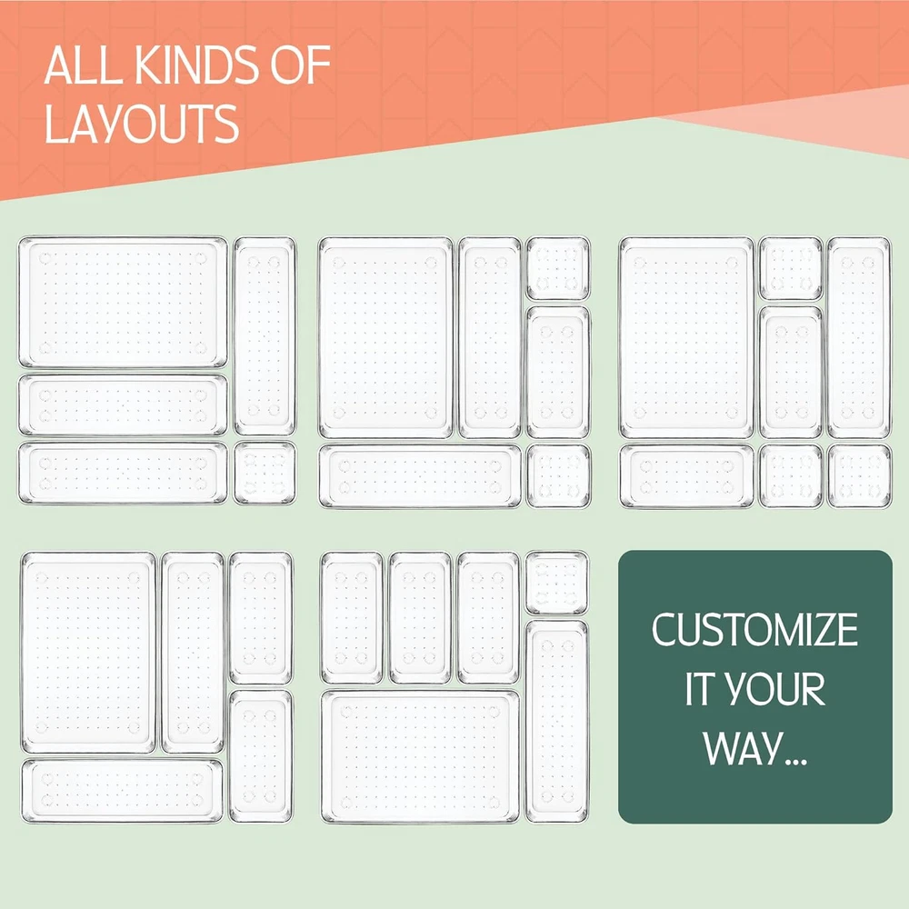 Clear Plastic Drawer Organizers Set, 4 Sizes Clear Drawer Organizers & Storage