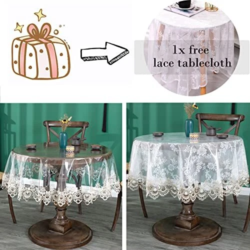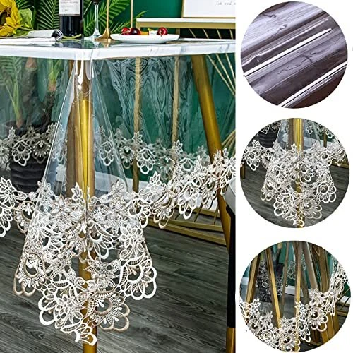 30 Days Return Policy Fast Delivery Trusted seller Clear Plastic Round Tablecloth Waterproof Vinyl PVC Tablecloth Embroidered Lace Edge Transparent Table Cover for Kitchen Outdoor and Indoor Uses-Round 43 inch, Floral 1 Product Description High Quality and Environmental Material: The plastic tablecloth is of good quality 100% PVC. Non-harmful and Eco-friendly. Due to the Fold packaging method of the tablecloth, Some Fold Creases can't be avoided when opening the package. You can iron it at low temperture. 100% Waterproof Tablecloth: Our clear tablecloth is oil-proof, stain proof, scratch and water No leaks, which is perfect table covering for your table. It can easily protect your tables and furniture from dust, scratches. Tablecloth Size: Table size is not tablecloth. Available in 8 sizes: 43 x 62 inch, 50 x 70 inch, 60 x 78 inch, 60 x 94 inch, diameter 43 inch, 50 inch, 60 inch,75 inch, please measure your table size before buying. Versatile Use: This vinyl rectangular tablecloth is perfect for everyday use, dining room, kitchen, party, holidays, catering, cafes, and great for special occasions, potlucks, BBQ's, buffets, baby showers, indoor and outdoor use, weddings and more. EASY CARE: Our wipeable tablecloths wipes clean with a damp cloth (recommended). Do not machine wash. Do not bleach. To deal with wrinkles, please put a wet cloth on top of the tablecloth and iron it. Shipping Returns Payment Shipping Shipping is FREE to all addresses other than APO/PO boxes in the lower 48 states. All our stock ships from US-based warehouses. Shipped via USPS or UPS (depending on location and package weight) Unless stated otherwise, all orders will ship within 24-72 hours of your payment being processed. Check our feedback to see the great reviews of FAST shipping we offer. Returns As our valued customer, we will do our best to make sure the product you receive arrives to you on time and as expected. If you are not satisfied with your purchase, please contact us within 30 days of receiving your order to process a return. Payment We currently accept payment via eBay managed payments only. Once payment is cleared, we will dispatch your shipment within 1-3 business days. Please refer to the "Shipping" tab for more information regarding shipping speed to your destination.