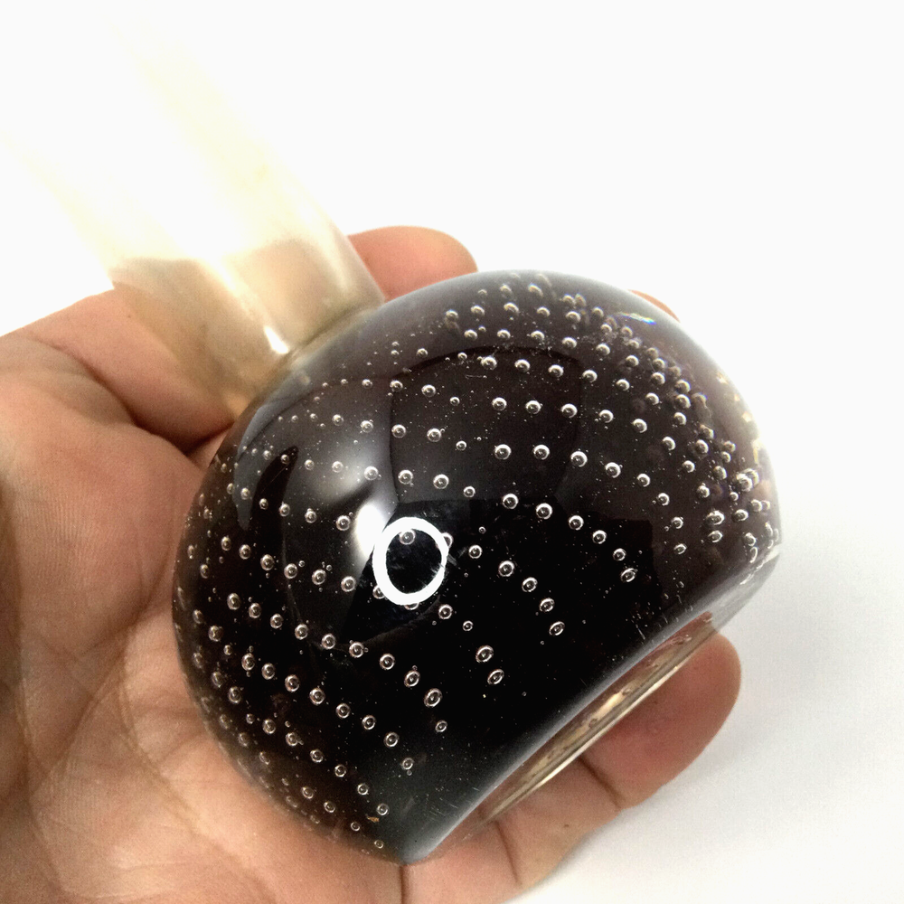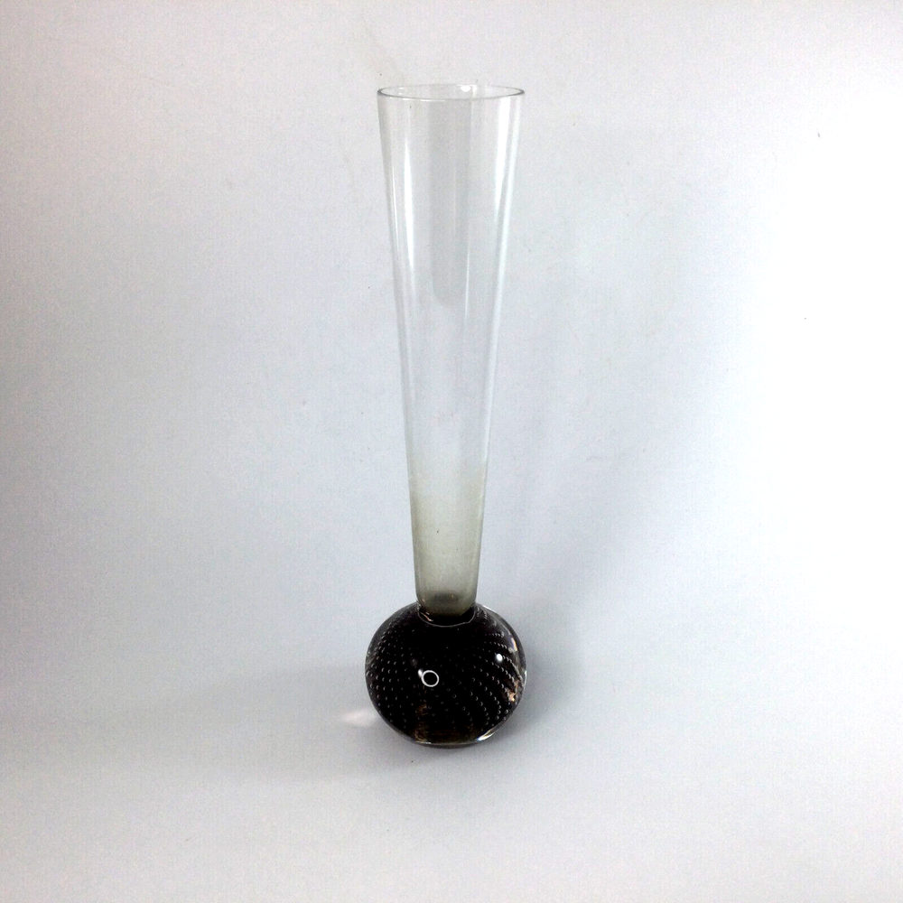 Small Glass Flower Vase Clear Purple and Controlled Bubble Ball Base 10 in H , base is 2.5" ball. Very good condition, no cracks or chips. InvN/GS/1