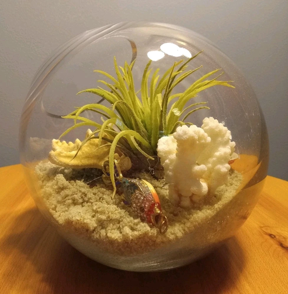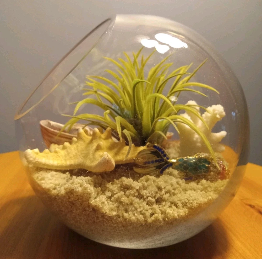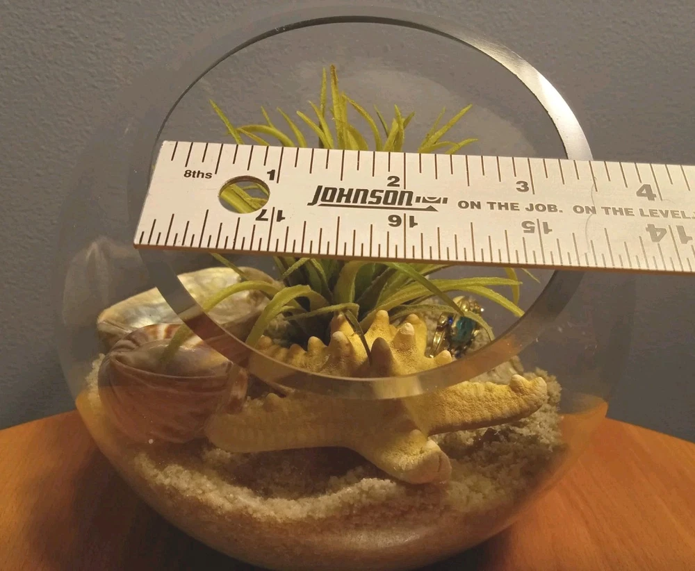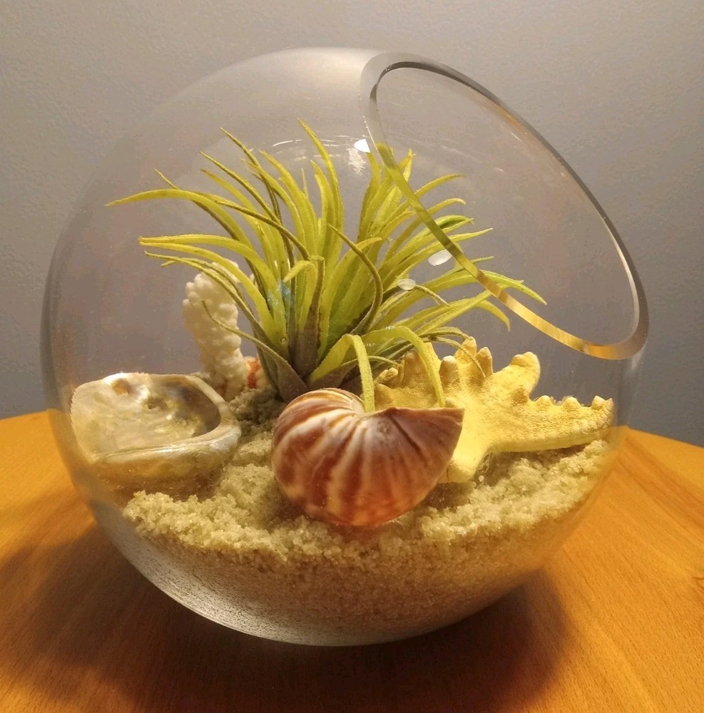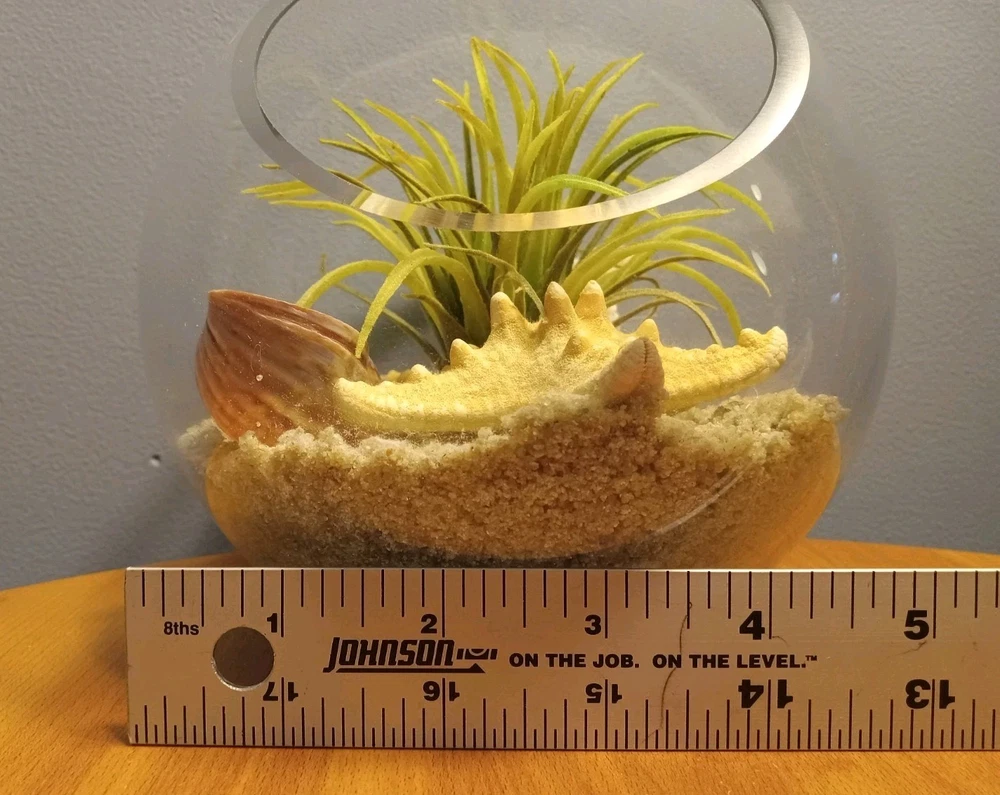 Enhance your space with the Round Clear Glass Decorative Tillandsia Terrarium, a chic and modern addition that brings a touch of greenery to any room. Crafted from high-quality glass, this terrarium showcases your favorite Tillandsia plants in a contemporary, artificial form that maintains their beauty without the need for watering or maintenance. Measuring at 6 inches in height and 5 inches in width, 2.6 lbs weight this houseplant arrangement is versatile for a variety of settings, from your home office to your living room. It's suitable for all occasions and does not require any personalization.