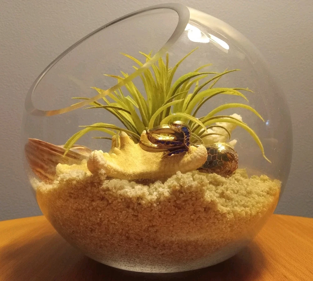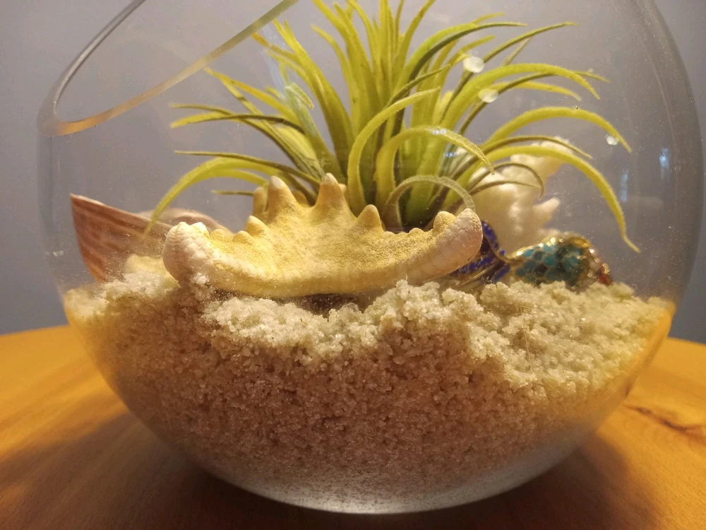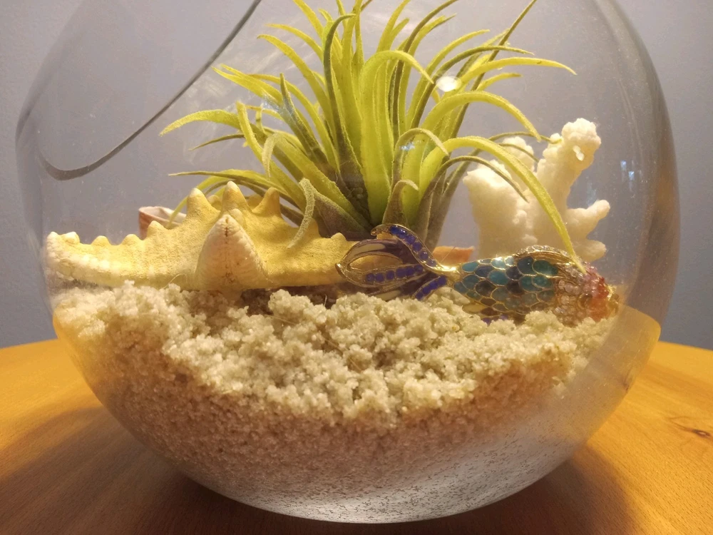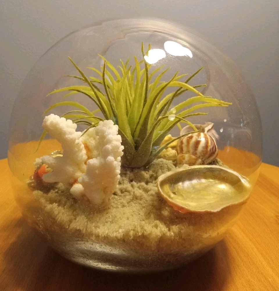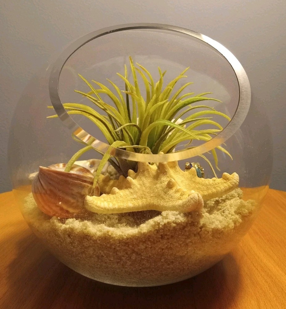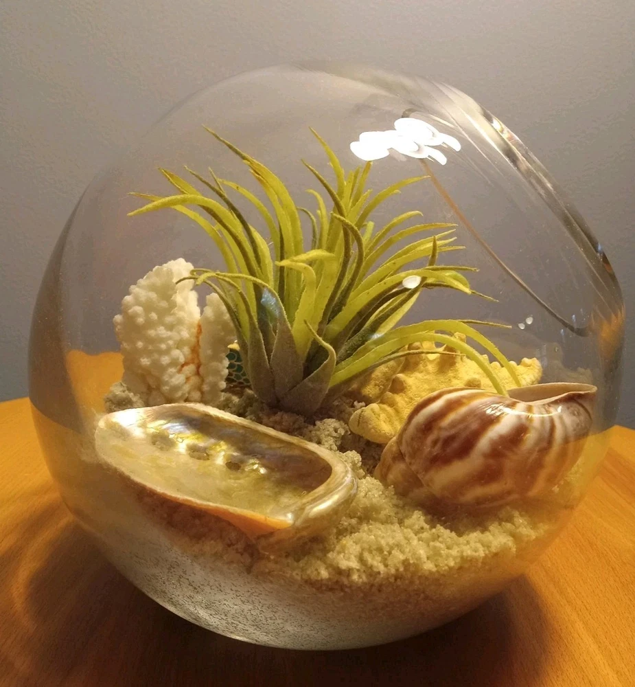 Enhance your space with the Round Clear Glass Decorative Tillandsia Terrarium, a chic and modern addition that brings a touch of greenery to any room. Crafted from high-quality glass, this terrarium showcases your favorite Tillandsia plants in a contemporary, artificial form that maintains their beauty without the need for watering or maintenance. Measuring at 6 inches in height and 5 inches in width, 2.6 lbs weight this houseplant arrangement is versatile for a variety of settings, from your home office to your living room. It's suitable for all occasions and does not require any personalization.