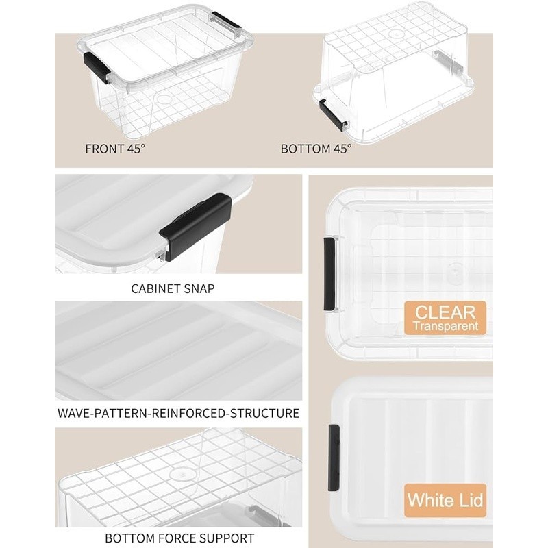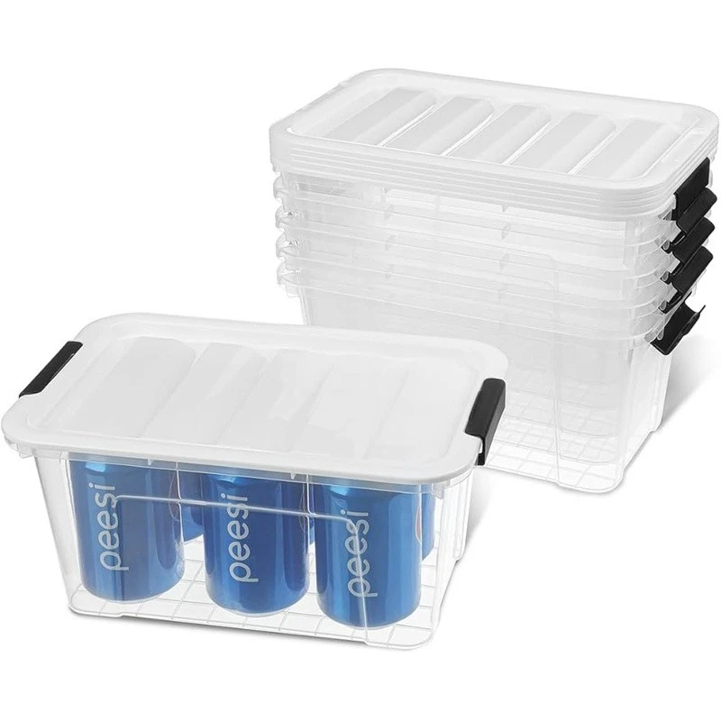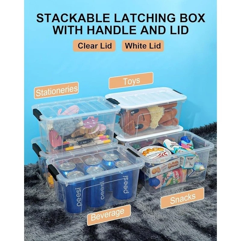 Clear Stackable Storage Bins W/ Buckle Lids Organizing Home Office Kitchen New