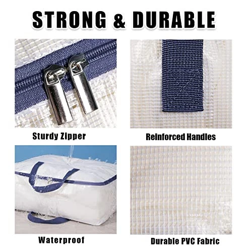 Return Policy Fast Delivery Trusted seller Clear Storage Bags with Zipper, 75L Extra Large Capacity - Closet, Underbed Storage Organizer for Clothes, Bedding, Comforter, Toys, Pillow & Blanket, 3 Pack Product Description Extra Large Capability: This set contains 3 clear storage bags in size of L23.6"xH9.8"xW19.7", the capacity of each storage bag is 75L(19.8 Gallon). These bags can be folded up completely flat and into a small size for easy storage in a drawer, closet, car or luggage. Clear Stroage Bag: This transparent design allows you don't have to open bags to find the item that you looking for. Strong & Durable: Our clear storage bags are made of nylon and heavy-duty PVC polymer materia, The net woven of nylon filaments is firmly embedded in the durable PVC fabric, which increases the sturdiness of the clear storage bag. Reinforced Handles and Sturdy stainless steel zipper. Great for All Kinds of Storage: It can be used to store your clothes, bedding, comforter, sheets, blankets, quilts, pillow, toys, rug, duvet,christmas decor, wreath etc. protects your stored articles from water, moisture, dust and dirt. Versatility: The waterproof storage bag set can be used for closet, under-bed or cloakroom. It is suitable for dormitory, bedrooms, attic, basement and RV use. Shipping Returns Payment Shipping Shipping is FREE to all addresses other than APO/PO boxes in the lower 48 states. All our stock ships from US-based warehouses. Shipped via USPS or UPS (depending on location and package weight) Unless stated otherwise, all orders will ship within 24-72 hours of your payment being processed. Check our feedback to see the great reviews of FAST shipping we offer. Returns Seller does not accept returns Payment We currently accept payment via eBay managed payments only. Once payment is cleared, we will dispatch your shipment within 1-3 business days. Please refer to the "Shipping" tab for more information regarding shipping speed to your destination.