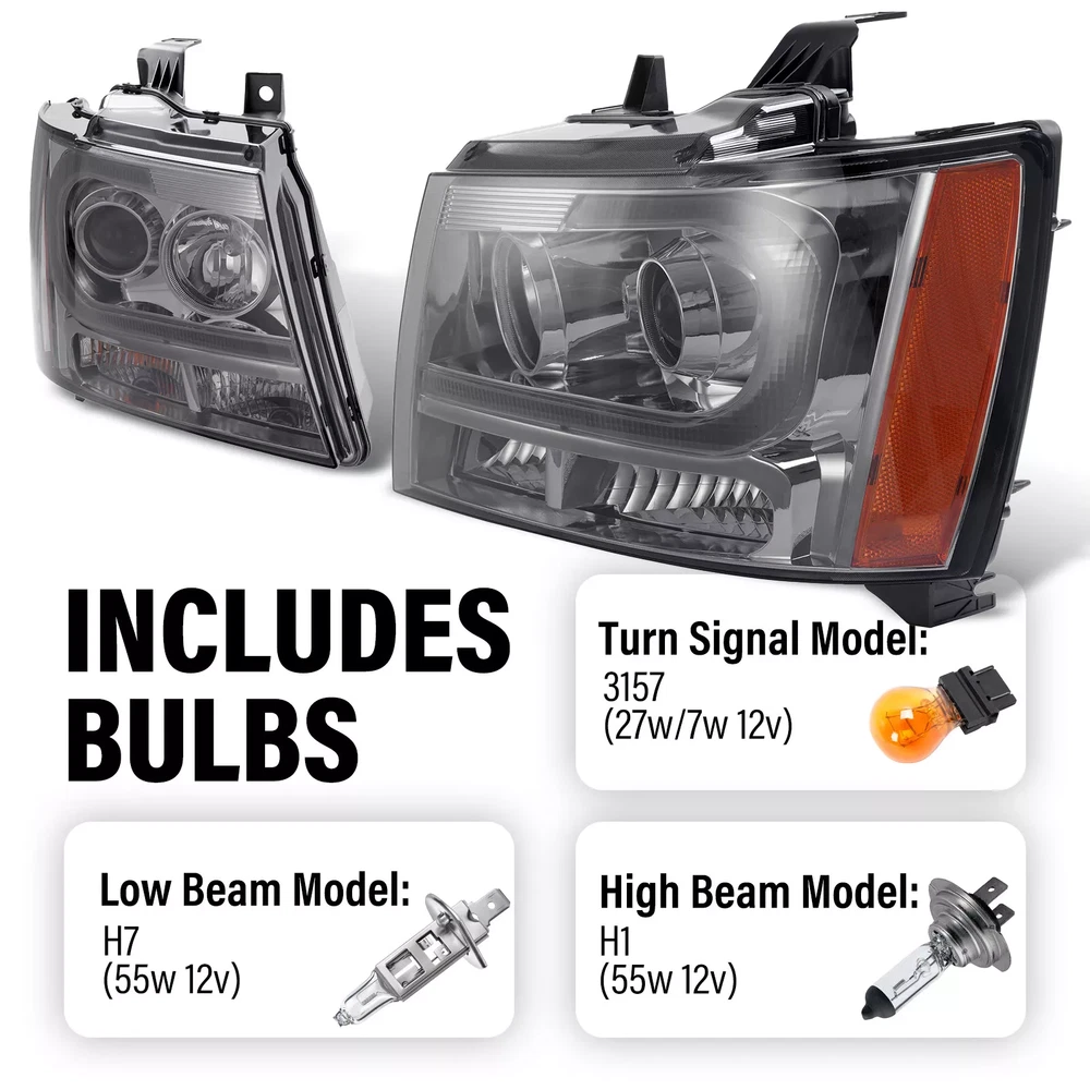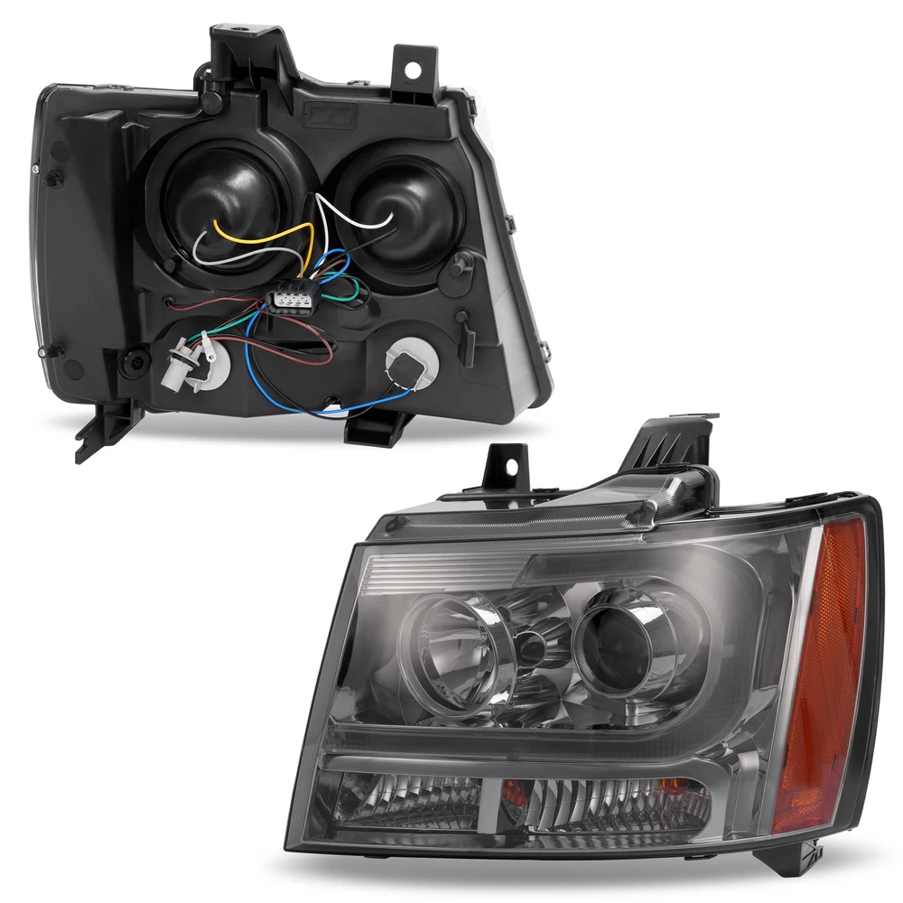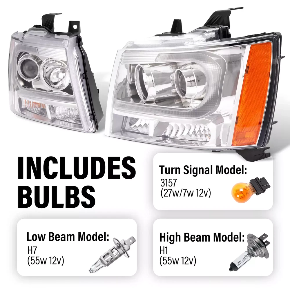 FIT FOR: For Chevrolet Suburban 2007-2014 For Chevrolet Tahoe 2007-2014 For Chevrolet Avalanche 2007-2013 Specification : Condition: 100% Brand New Type: Headlight Material: Plastic Color: Clear Lens+Black Housig/Clear Lens+Chrome Housing/Smoke Lens+Chrome Housing Installation method: Screw-On Placement on Vehicle:Front, Left, Right Manufacturer Warranty:1 Year Note: Includes Structural and Functional Guidelines Replaces Part Number:Replace for 1221-0120L, 1221-0120R, 22853025, 22853026,GM2502263, GM2503263 Features: Made of high quality plastic with strong strength and resistance impact. Built to strict quality control standards. Produces stronger and more focused light beam compared to most headlights. Replace broken headlights, and bring your vehicle back to life. Highlight headlights increase forward distance visibility as well as peripheral width. Good waterproof performance can prevent rainwater from entering to ensure your driving safety. Package Includes : 1 Pair of Headlights (Driver & Passenger Side) w/ Structural and Functional Guidelines Shipping: All items will be shipped out in 1 business day, no expedited service available. We ship our items to USA only(Does NOT include Hawaii, Alaska or Puerto Rico, PO Boxes/APO's). Shipping Notes: We use multiple warehouses and will select the nearest warehouse for delivery according to your order address and our inventory, Thank you for your cooperation. Contact us: Any Questions, Just feel free to contact us on eBay. We will reply you in 24 hours. On Dec 5, 2024 at 22:02:38 PST, seller added the following information: