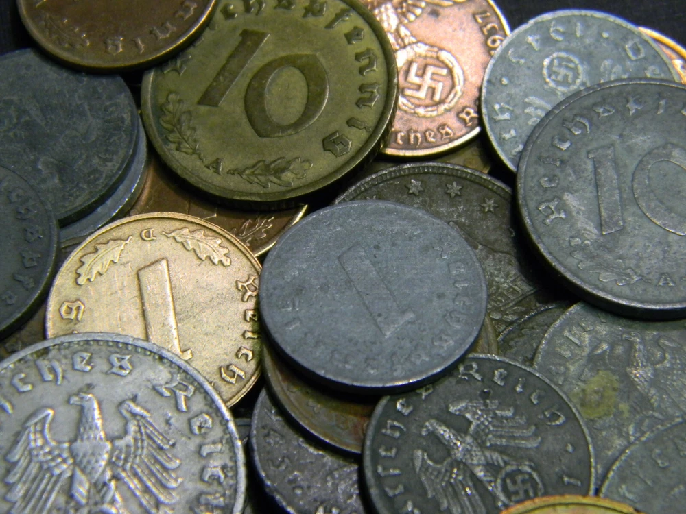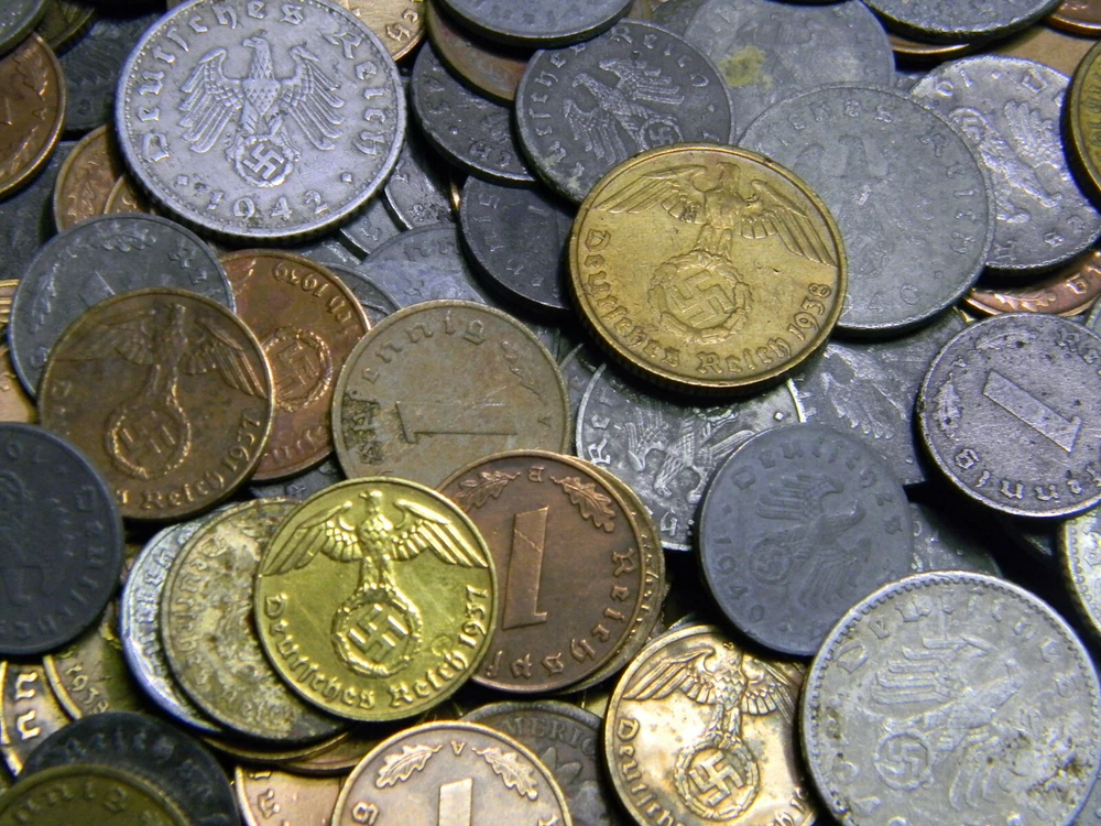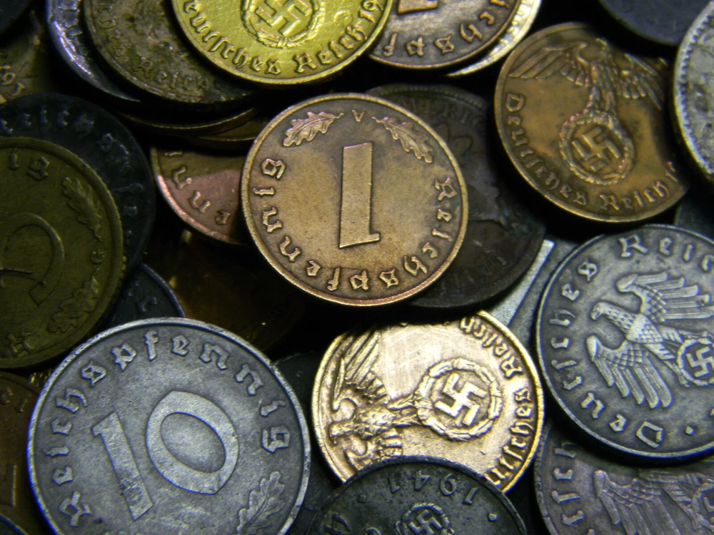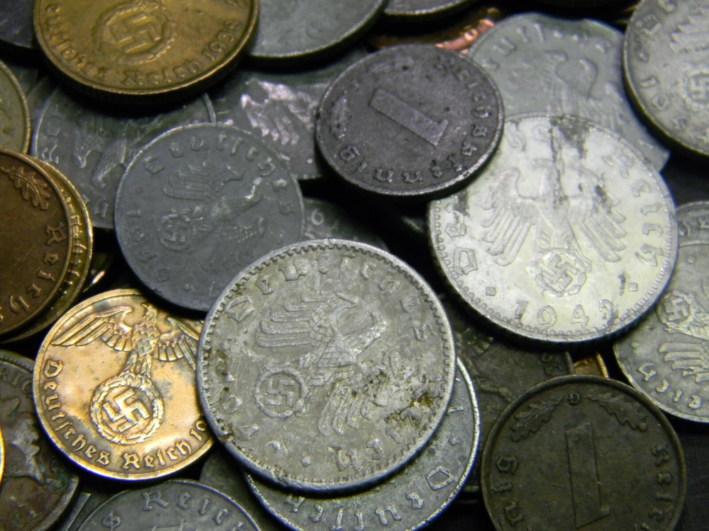 Description Each lot contains six (6) randomly picked WWII-era German coins. All six coins are different. A typical lot contains: 1937-1940 1 Reichspfennig, bronze 1937-1940 2 Reichspfennig, bronze 1940-1944 1 Reichspfennig, zinc 1940-1944 5 Reichspfennig, zinc 1940-1944 10 Reichspfennig, zinc And ONE of the following rarer types 1937-1939 5 Reichspfennig, brass 1937-1939 10 Reichspfennig, brass 1939-1944 50 Reichspfennig, aluminum Special offer: Save 5% when you buy 2 sets, 8% when buy 3 and 10% when you buy 4 or more. Order 3 or more will get all 3 of the "rarer" type of coins mentioned above Shipping Each additional item ships FREE within continental U.S.A. In ter national bidders are welcome and pay the actual shipping cost.