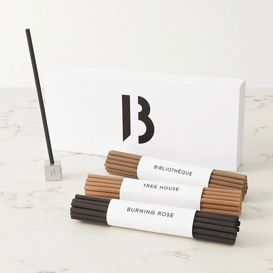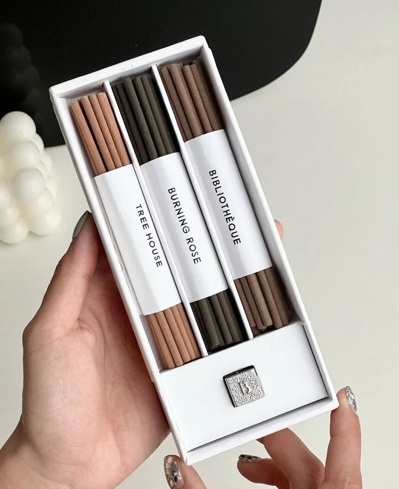 BYREDO Trois Encens 60 Incense Sticks - Handmade in Tokyo, Perfect Holiday Gift Discover the essence of tranquility with Byredo's limited-edition 'Trois Encens' set. This collection, perfect for holiday gifting, features 60 incense sticks handmade in Tokyo using traditional techniques dating back 400 years. Each stick offers a burn time of 30-40 minutes and includes three iconic fragrances: 'Bibliothèque', 'Tree House', and 'Burning Rose'. The set comes with an elegantly embossed pewter holder, adding a touch of sophistication to any space. Enjoy the long-lasting, calming scents of Byredo incense sticks this holiday season. Perfect Holiday Gift / Christmas Gift Handmade in Tokyo Three Iconic Fragrances : 'Bibliothèque', 'Tree House', and 'Burning Rose' Long Burn Time : Approximately 30-40 minutes each Elegant Pewter Holder Included Capture the perfect blend of tradition and modern luxury with Byredo incense sticks, ideal for creating a serene ambiance in your home.