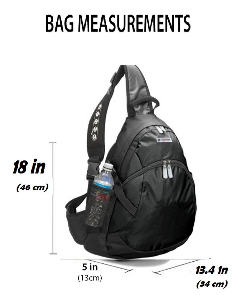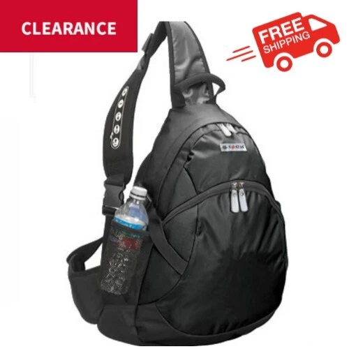 Clearance Sale BLACK Travel Backpack Rucksack Laptop School Bag Girl Women Men A mesmerizing mix of sleek duratex and fierce 840d nylon, this edgy, single-strap pack has undeniable appeal. This mind-blowing bag boasts a 5-button ElekTex Smart Fabric control panel on the back strap, allowing the user to control volume, pause, select or stop music from and iPod. Tune in via headset of your choice through a universal jack also on the strap. Additional bragging rights include a zip compartment in front with plenty of pockets for a phone, PDA, cards, pens, keys and accessories and a discreet, side-zip pocket on the back for a wallet. Dual mesh pockets on the sides and a cozy, padded back panel finish it off. Dimensions: 18.5" x 14" x 4.5" Origin: Imported Special Features: Back to School, Duratex, School, Sling Country of Origin: United States