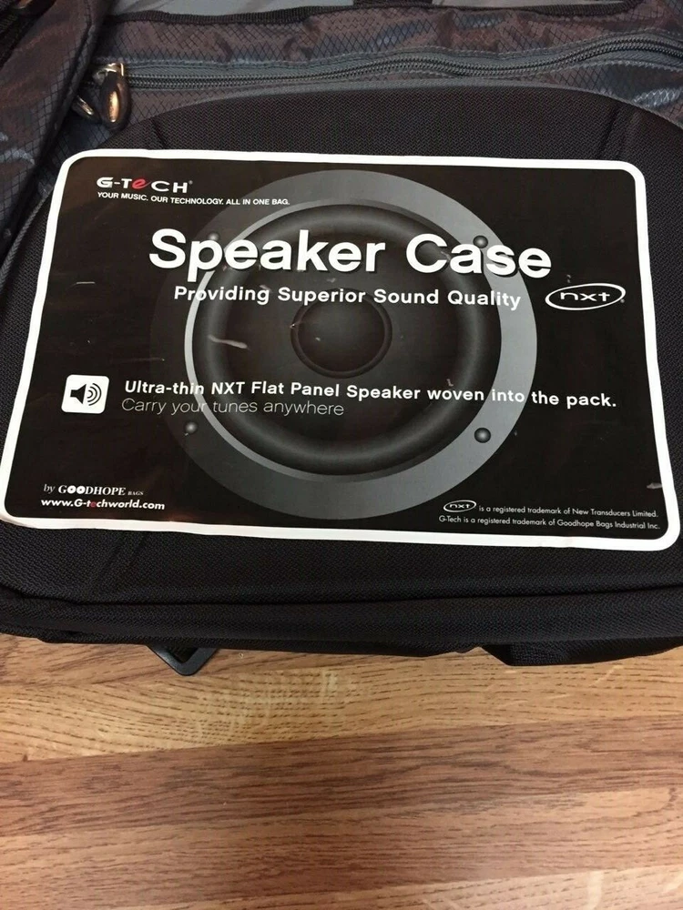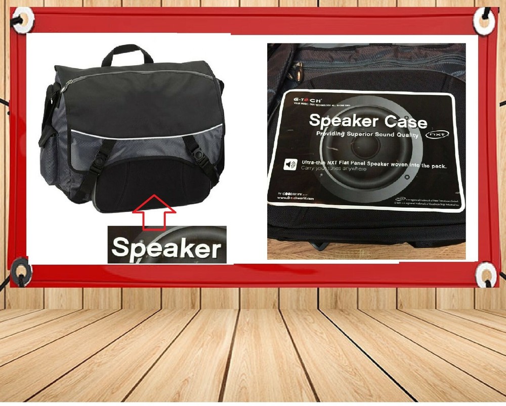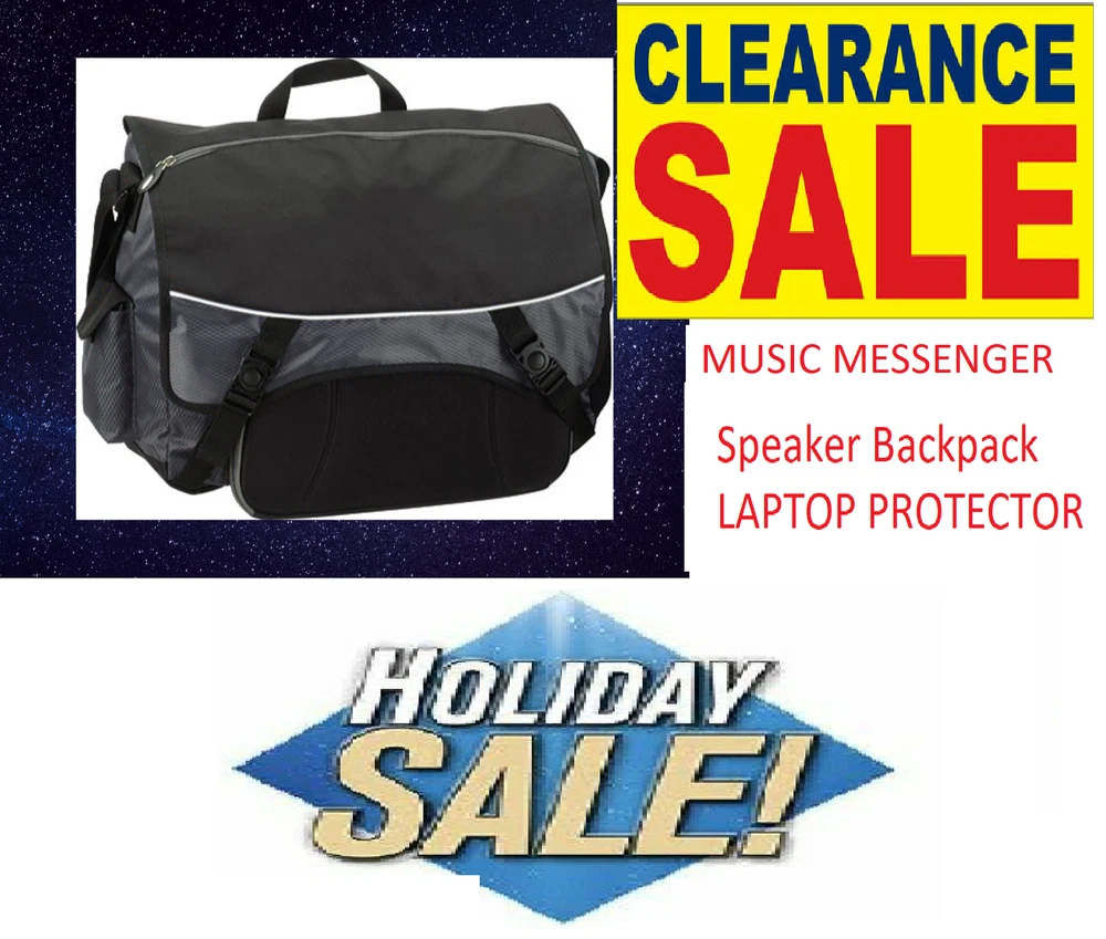 Travel Backpack Rucksack Laptop School Bag for Girl Women Men-NEW Speaker Backpack LAPTOP PROTECTOR MUSIC MESSENGER * Size: 16 ½"L x 11 ½"H x 5 ½"W * Colors: Black/Grey * Imprint: Front flap 9"W x 5 ½"H * Embroidery: Front flap 5 ½"W x 3 ½"H * Material: Nylon Made of duratex nylon mixed with 420D jacquard • This bag provides superior quality of sound w/ built-in ultra thin NXT speaker that connects to your laptop • A padded laptop compartment w/ zippered organizer pockets under the flap • Side mesh pocket for water bottle and side flap pocket secures your cell phone • Speaker requires 3AA batteries (not included)