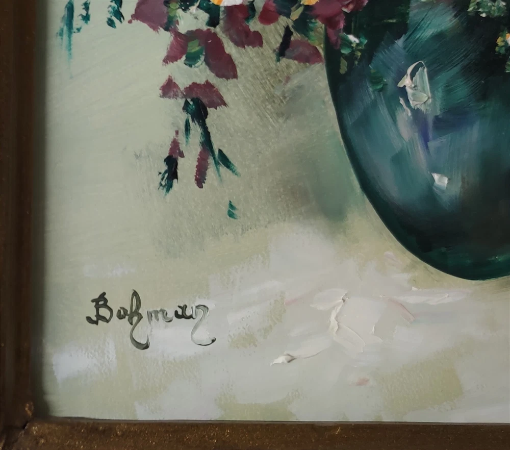Clearance Sale Handover Collection Painting Signed Bahman Flowers Still Life