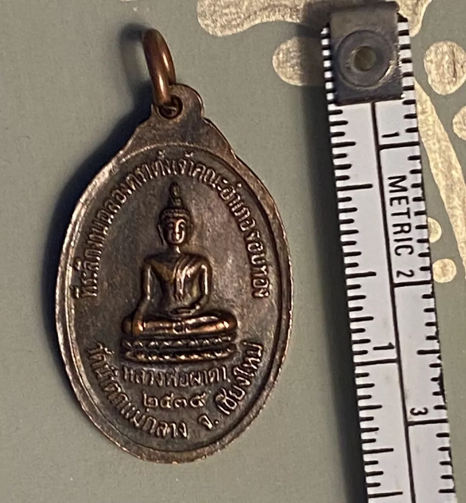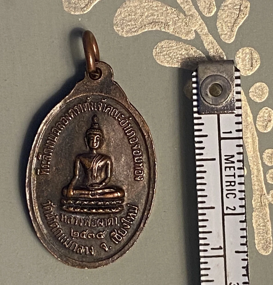 This Revered Buddhist Monk Amulet Pendant is a vintage medal from Southeast Asia. It features a dark copper/brown color as picture. The amulet is a Thai Amulet and is perfect for collectors of medals from the Buddhist tradition. The age of the amulet is unknown. It is a great addition to any collection and is perfect for anyone who loves Buddhism.