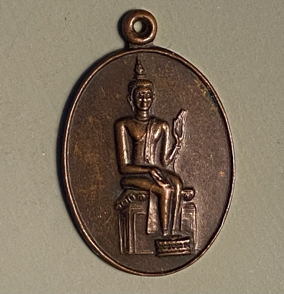 This vintage Thai medal/talisman/amulet is a unique piece of Southeast Asian artistry. The mixed materials and multi-color design make it a stunning addition to any collection. Its antique originality and post-1940 age add to its value and historical significance. This Thai amulet is a rare find and would make a great gift for any collector or lover of Asian art.