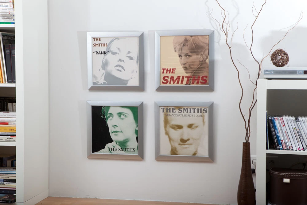 Set of 2 Vinyl Record Wall Display Frames. PLEASE NOTE THAT A BARELY NOTICABLE MARRING HAPPENDED DURING SHIPMENT. HENCE THE HEAVY DISCOUNT ON THE ITEMS. THE FRAMES ARE SOLD AS IS. The Easy Frame is a truly innovative vinyl wall display frame. The best accessories to store, protect, display and highlight your record collection! You can easily change your decoration according to your desires or new purchases thanks to the patented Easy Frame system by Rock on Wall that allows to switch your framed record in a single move and without disassembly. Our injected recycled PVC frame, available in 4 colors, is designed to make the fitting and displaying of the artwork as simple as possible. Just slip the sleeve into the frame with ease. This frame is ideal for music and design lovers alike. As a bonus for the environment the use of recycled PVC allows us to reduce our carbon footprint. There are many solutions to display your records, but none of them can turn them into art better than this innovative, well designed, versatile and accessible frame. Loading the cover art could not be easier. Simply slide your favorite sleeve in the slot at the top of the frame and hang your musical masterpiece on the wall. Technical characteristics : · Injected recycled PVC vinyl record frame with satin finish. · Optical high-quality plexiglass window · Integrated suspension notch · Single, double and triple LPs compatible · Dimensions : 15in x 15in x 1.2 in · Weight: 1.6 lbs Available in Black, White, Red or Silver. ********************* Please note that the albums shown are for decoration idea only and are not included in the package deal.