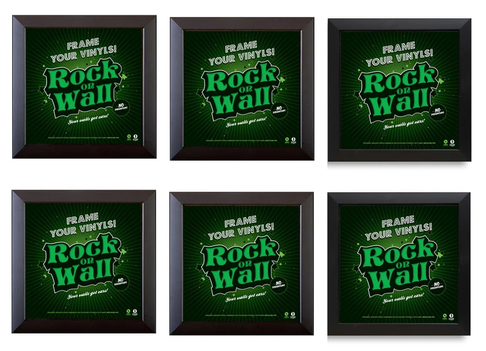 Set of 6 Vinyl Record Wall Display Frames. Free Anti Static Record Brush included PLEASE NOTE THAT A BARELY NOTICABLE MARRING HAPPENDED DURING SHIPMENT. HENCE THE HEAVY DISCOUNT ON THE ITEMS. THE FRAMES ARE SOLD AS IS. The Easy Frame is a truly innovative vinyl wall display frame. The best accessories to store, protect, display and highlight your record collection! You can easily change your decoration according to your desires or new purchases thanks to the patented Easy Frame system by Rock on Wall that allows to switch your framed record in a single move and without disassembly. Our injected recycled PVC frame, available in 4 colors, is designed to make the fitting and displaying of the artwork as simple as possible. Just slip the sleeve into the frame with ease. This frame is ideal for music and design lovers alike. As a bonus for the environment the use of recycled PVC allows us to reduce our carbon footprint. There are many solutions to display your records, but none of them can turn them into art better than this innovative, well designed, versatile and accessible frame. Loading the cover art could not be easier. Simply slide your favorite sleeve in the slot at the top of the frame and hang your musical masterpiece on the wall. Technical characteristics : · Injected recycled PVC vinyl record frame with satin finish. · Optical high-quality plexiglass window · Integrated suspension notch · Single, double and triple LPs compatible · Dimensions : 15in x 15in x 1.2 in · Weight: 1.6 lbs Available in Black ********************* Please note that the albums shown are for decoration idea only and are not included in the package deal. **********************