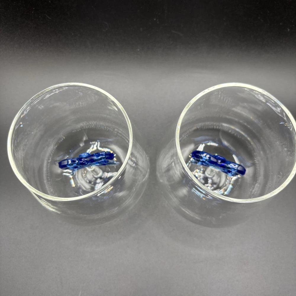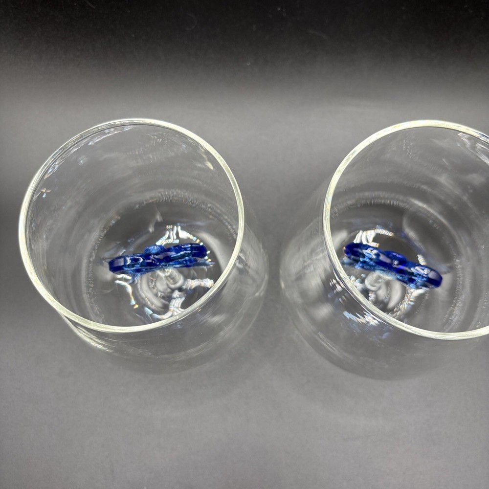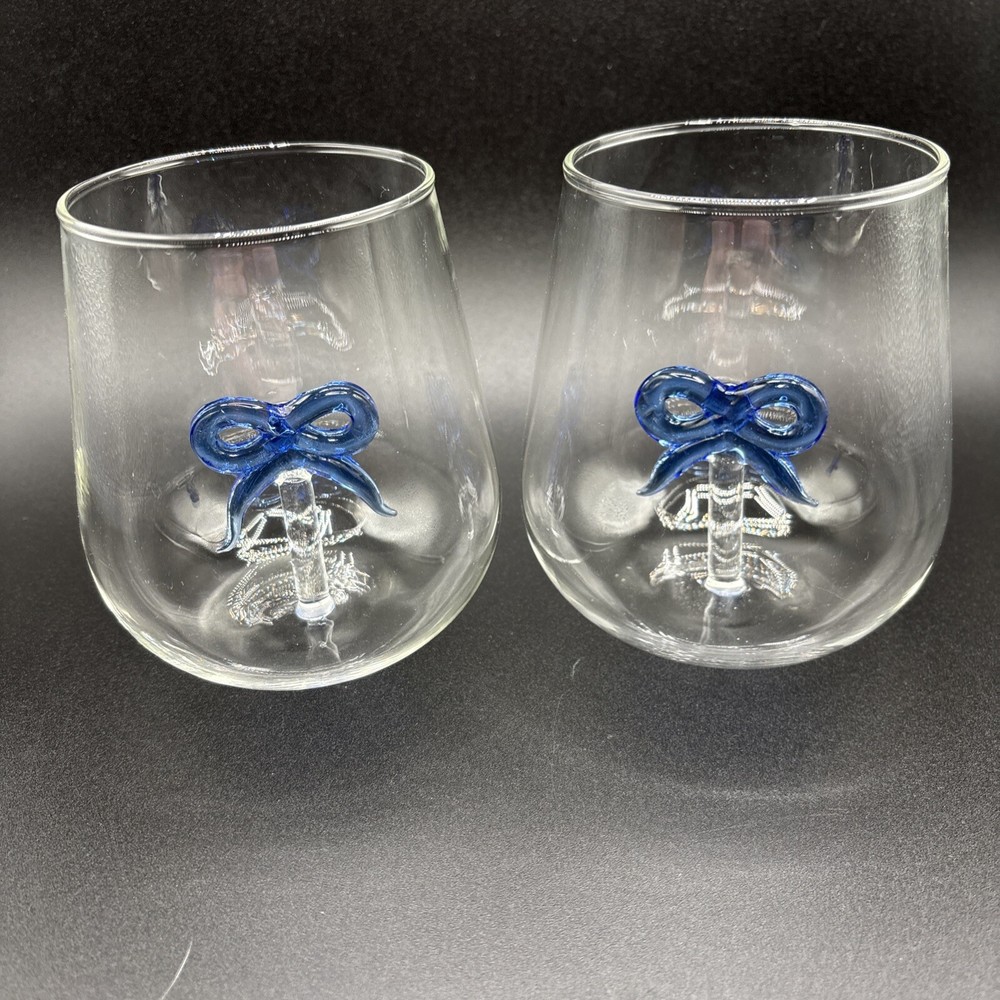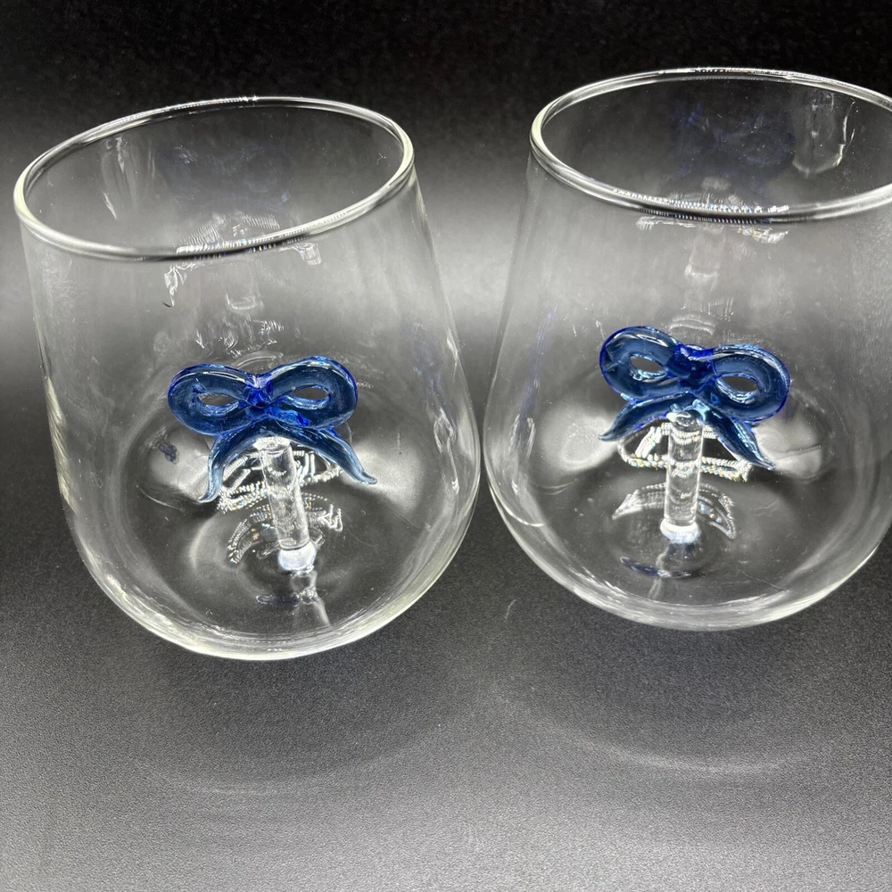 Cleo & June Blue Bow Stemless Wine Glasses Set of 4 New In Box