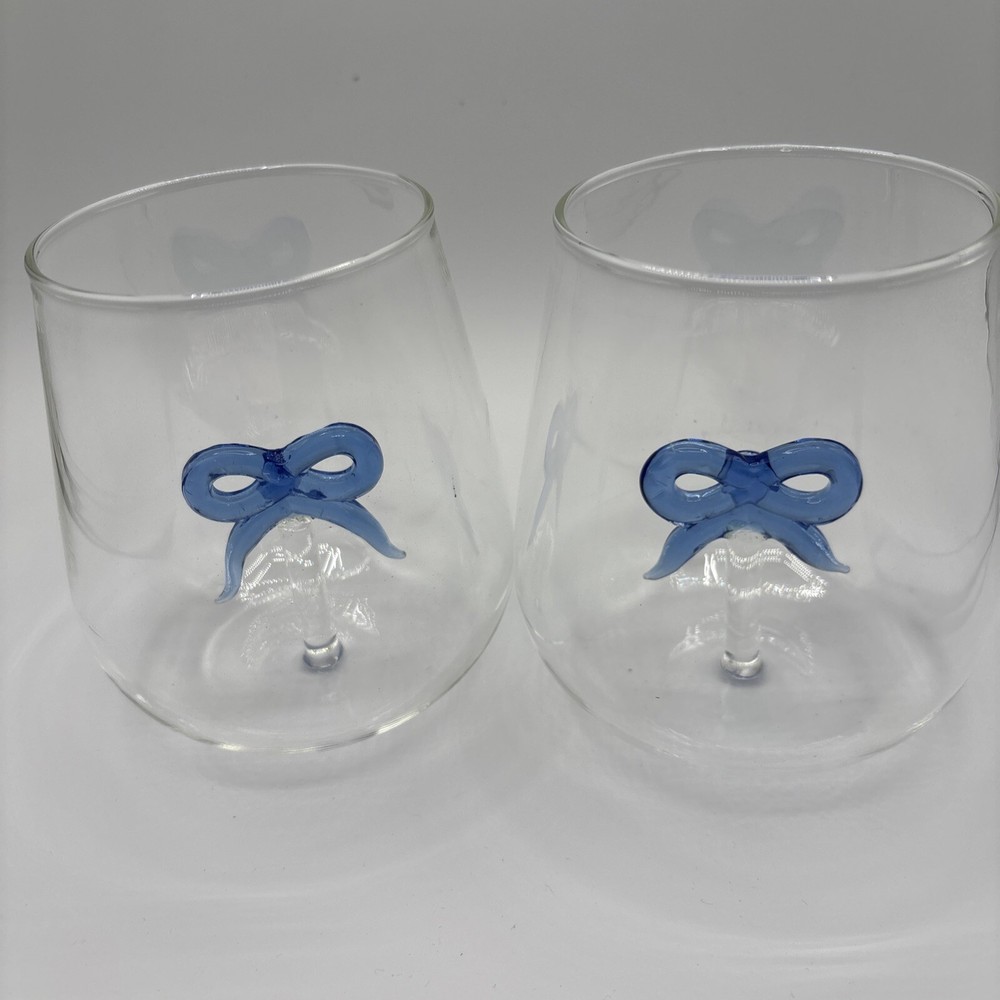 1. Absolutely love these stemless wine glasses! The unique blue bow design adds a chic, elegant touch to any table setting. They feel sturdy and well-made, with a generous 20 oz capacity—perfect for wine, cocktails, or even juice. The hand wash care is simple to follow, keeping them looking brand new. Such a stylish and practical set, great for entertaining or everyday use. Highly recommend!
