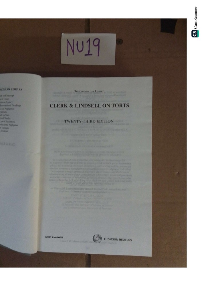 The product is a 23rd edition of Clerk and Lindsell on Torts, part of The Common Law Library by Sweet and Maxwell. This rare 1st edition book is a valuable resource for those interested in law, providing valuable insights and expertise on the subject. Written in English, this antiquarian and collectable book is a must-have for legal professionals and enthusiasts looking to expand their knowledge and collection.