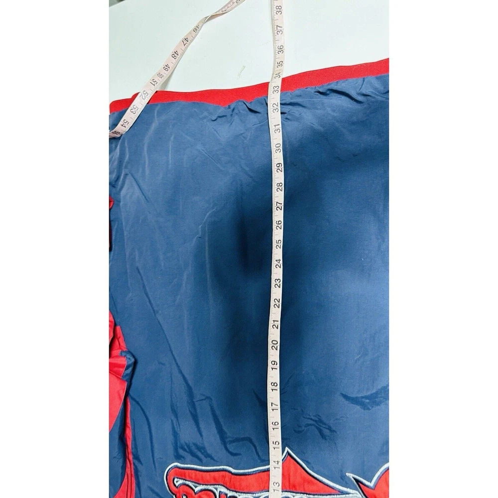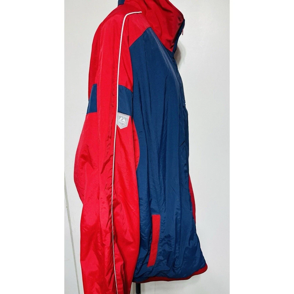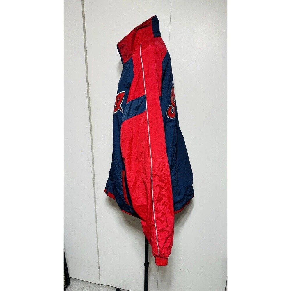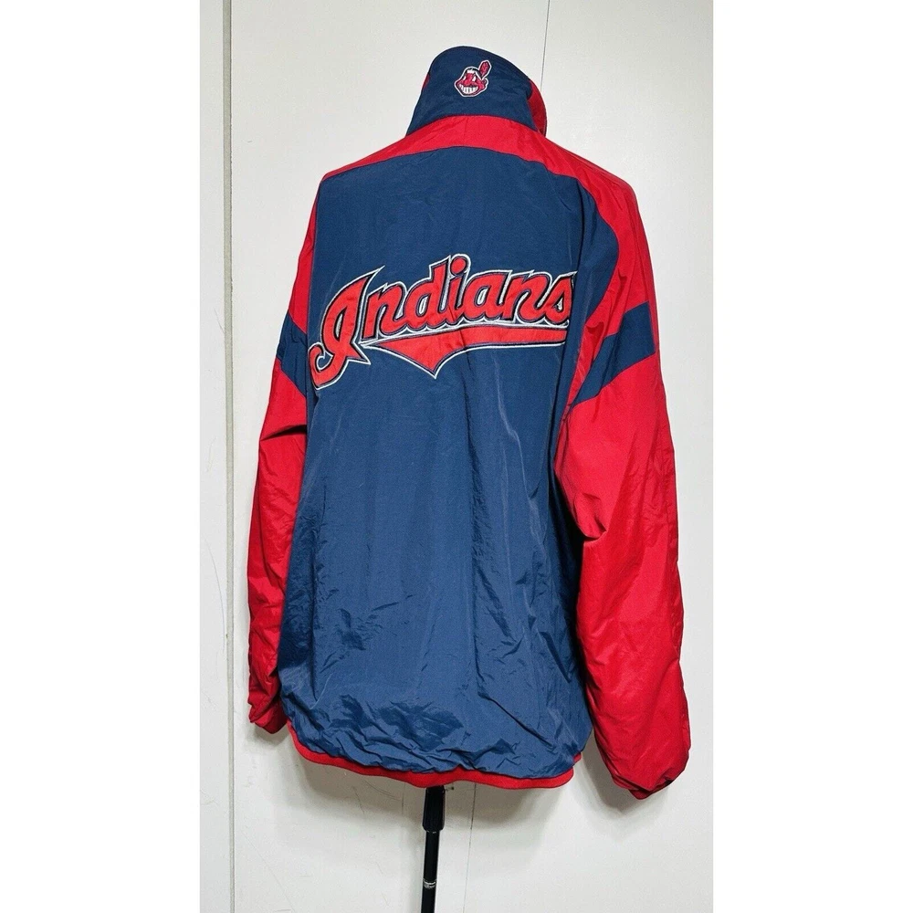 Excellent Condition Show off your support for the Cleveland Indians with this Majestic brand windbreaker jacket featuring the iconic Chief Wahoo logo. The jacket is a size XXL and comes in a striking blue color with accents of red. It is perfect for any fan of the Major League Baseball team and is made in Korea, Republic of. This jacket is a must-have for any Cleveland Indians fan. It is made of high-quality materials and features a full zip design for easy wear. The jacket is designed for men and is perfect for showing off your team spirit. Get yours today and add it to your collection of fan apparel and souvenirs!
