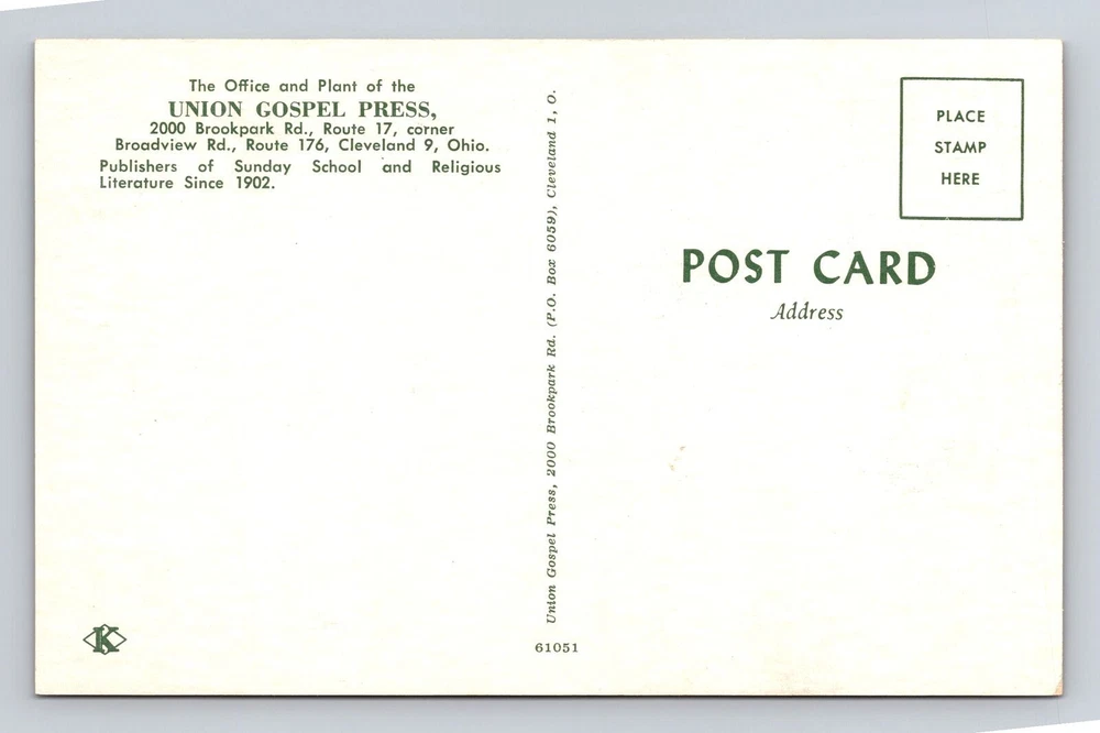 Cleveland OH-Ohio, Union Gospel Press, Antique Vintage Souvenir Postcard