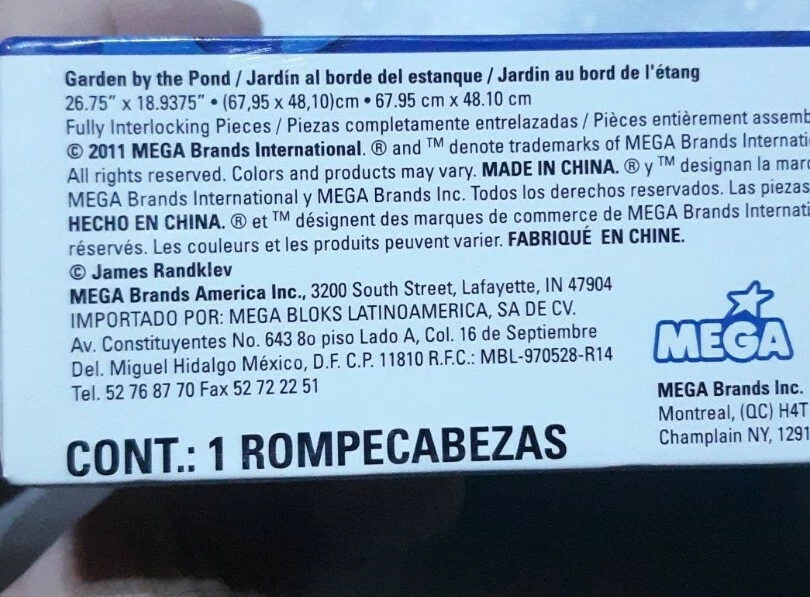 Material:CardboardMPN:21001AINModified Item:NoAge Level:12-16 Years, 17 Years & UpNumber of Pieces:1000Country/Region of Manufacture:United StatesBrand:MEGA BrandsRecommended Age Range:12+UPC:072348210014Year:2011Custom Bundle:NoColor:Multi-ColorFeatures:Interlocking PiecesTheme:LandscapesCharacter Family:Jigsaw Puzzlegtin13:072348210014