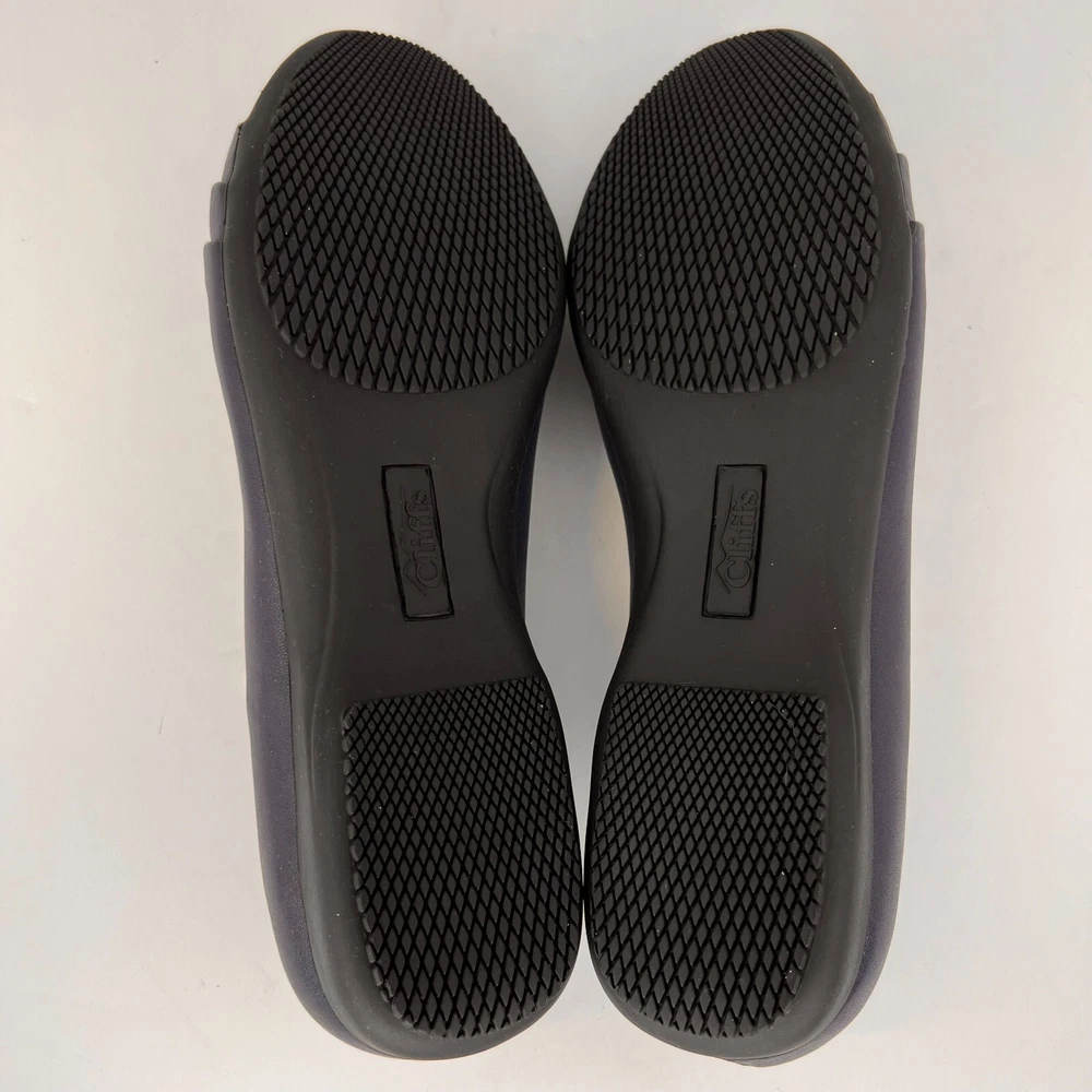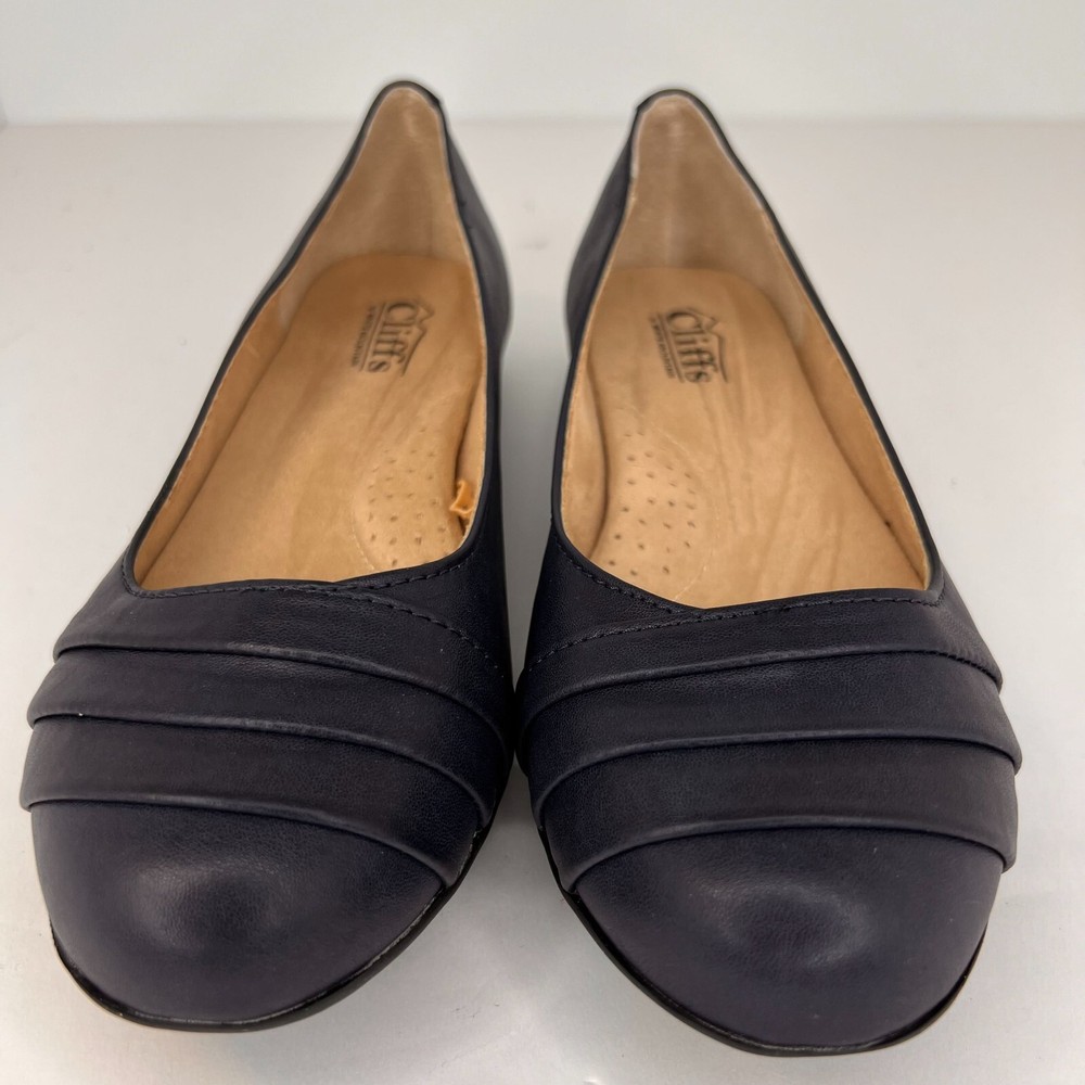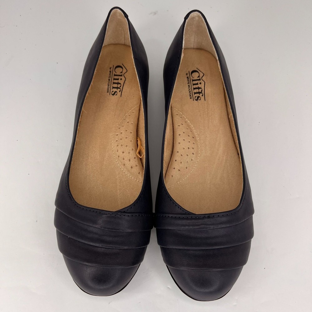 Elevate your casual style with these Cliffs by White Mountain Women's Clara Navy Flats . These slip-on ballet shoes are perfect for travel, business, and everyday wear. The solid black color and round toe shape make them versatile for any outfit, while the faux leather lining material and cushioned insole provide comfort all day long. The rubber outsole ensures durability and traction, and the foam insole adds to the cushioning effect. These flats are available in UK size 6, US size 8.5, and EU size 39, with a W shoe width. These shoes are suitable for summer, fall, and spring seasons. Add these stylish and comfortable flats to your wardrobe today! 100% CUSTOMER SATISFACTION IS OUR GOAL! Our items are always carefully examined for condition, measured if necessary, and photographed in a climate controlled and smoke-free environment. We make every attempt to accurately describe and clearly picture the items we have for sale. Please, ALWAYS view all of the photos. We value your business and our goal is your complete satisfaction. FAST SHIPPING All items are packaged with care and shipped out the same or next business day via USPS, FEDEX, or UPS with tracking numbers so you are always informed. RETURNS We offer a 30-day return policy. All items must be unused and unopened in the condition in which they were received, with original packaging, and all accessories included for return. REVIEWS - CUSTOMER SATISFACTION - COMMUNICATION We aim to make you happy. After you receive your shipment, please leave a positive review . If you have concerns or questions about your order, please contact us so we can resolve the issue. We will do our best to make you satisfied. THANK YOU FOR YOUR BUSINESS!