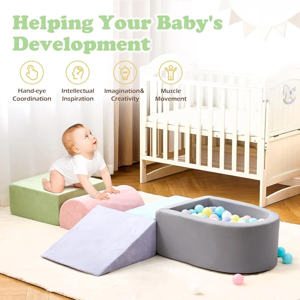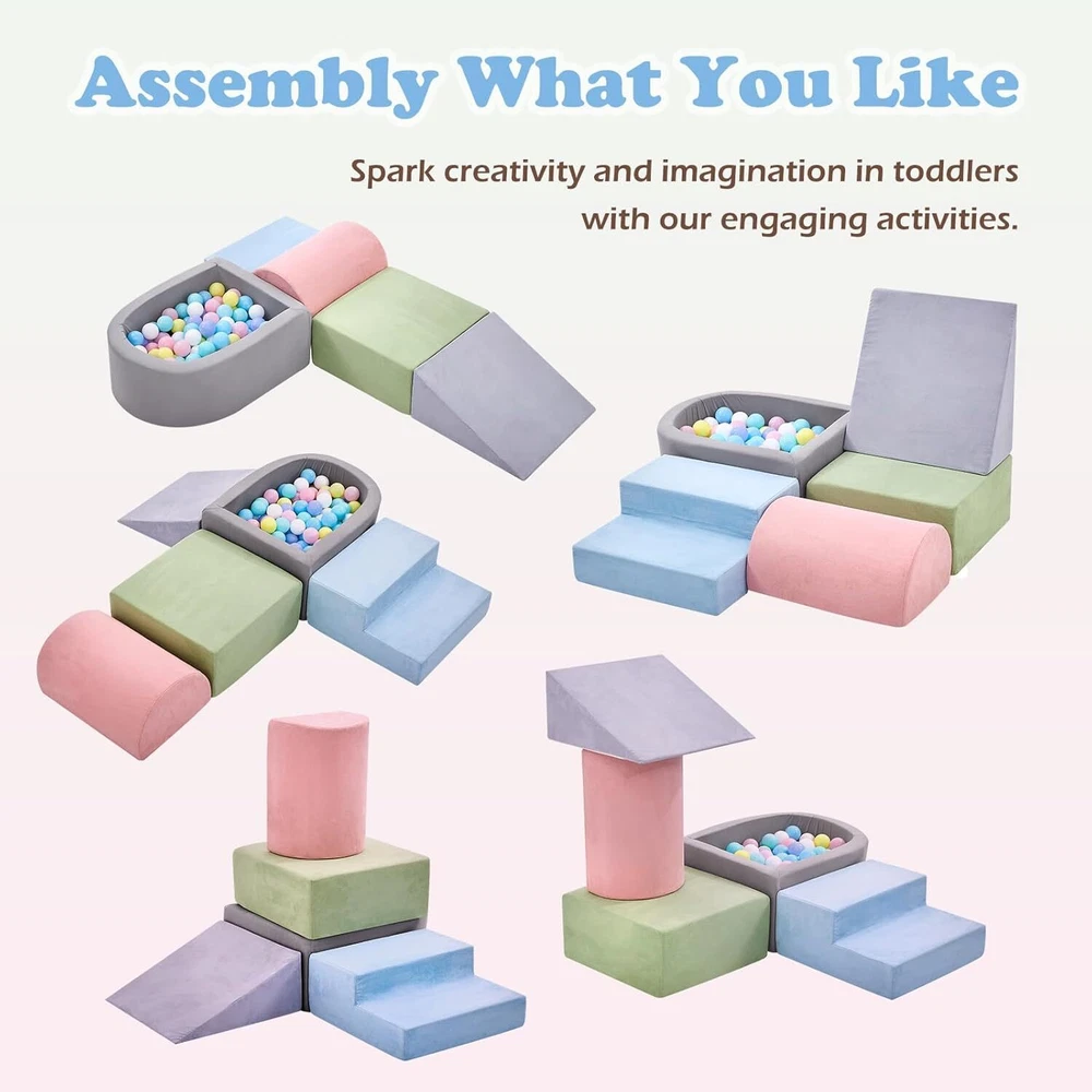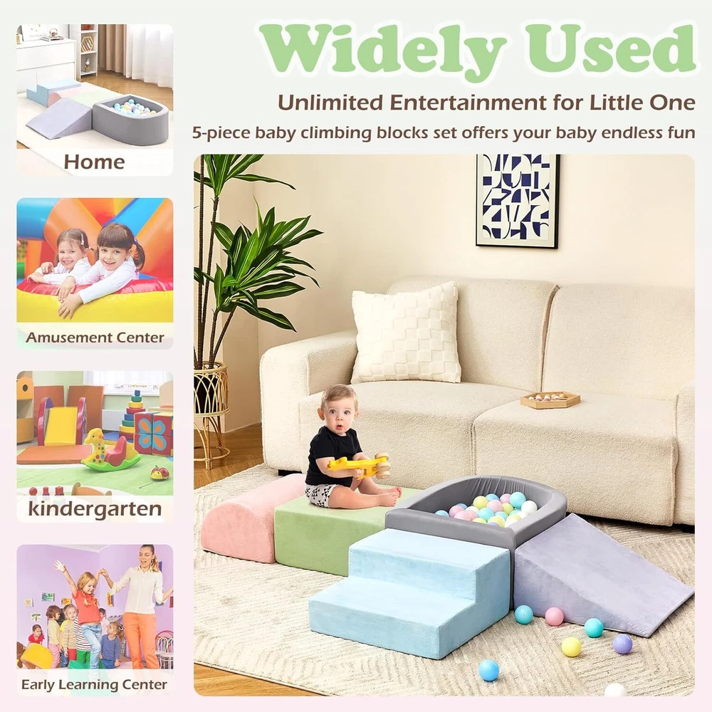 【High-quality& Comfortable Fabric】: Crafted from soft, anti-static, non-pilling, non-slip, and durable fabric, our climbing blocks feature superior quality fabric. This soft texture offers a nice touch sense, delivering a blend of practicality and aesthetic appeal to our ' fun toys. Our continual efforts are dedicated to providing products that meet both functional and visual demands, ensuring an enjoyable and safe play experience for children 【Premium High-Density Foam】: Elevate your child's playtime with our premium toddler climbing toys filled with high-density foam. Experience the perfect balance between durability and comfort as our foam is designed to withstand years of jumping, tumbling, crawling, and adventure-filled play. The firm yet soft foam provides unparalleled cushioning and support, allowing children to climb up and down with confidence and without the fear of injury.(Please Note: Due to vacuum sealed shiping,once you open the package, please wait 48-72 hours for full expansion) 【Safe&Fun to Play】: Our climbing blocks with ball pit( hold up to 100 pcs balls, balls not Included) )are made from non-toxic and odorless fabric. Designed with hidden zippers to prevent scratching on children's soft skin, these climbing blocks provide a reassuring&safe environment for play. With a focus on safety, our foam blocks are built without hard structures or sharp edges to protect children from bumps and injuries.Your child can safely play, toddle, and roll on this climbing toy that offers a soft and supportive surface, providing peace of mind for parents 【Educational Toys】: Our toddlers climbing toys have a variety of shapes and colors, which can attract children's attention and help them develop recognition skills. Children can also learn about shapes, sizes, colors and spatial relationships by stacking, arranging and manipulating blocks. Also, by climbing up and down the blocks, toddlers can enhance their gross motor skills, including balance, coordination, strength, and overall physical development. These skills are essential for the holistic development of children, aiding in their physical, social, and emotional growth 【Climb and Crawl for Motivation】: The versatile soft foam climbing blocks offer a safe indoor activity for children of varying ages, promoting coordination, balance, and gross motor skill development through physical play, 5-piece soft foam blocks design can make your combine separate blocks as they like, stimulate children's imagination and creativity.These blocks encourage early movers and crawlers to build strength and movement skills. Perfect for classrooms, nurseries, families, and playrooms, these blocks enhance learning environments with engaging and interactive play opportunities 【Easy to Use】: The foam climbing block set is designed for easy assembly and disassembly with smooth zippers. The machine-washable covers allow for convenient cleaning and maintenance, ensuring a fresh and brand-new look at all times. Your little ones are sure to adore this soft play equipment, providing with endless hours of safe and enjoyable play Product information Product Dimensions 13.4 x 7.5 x 17.3 inches Item Weight 11.95 pounds Country of Origin China