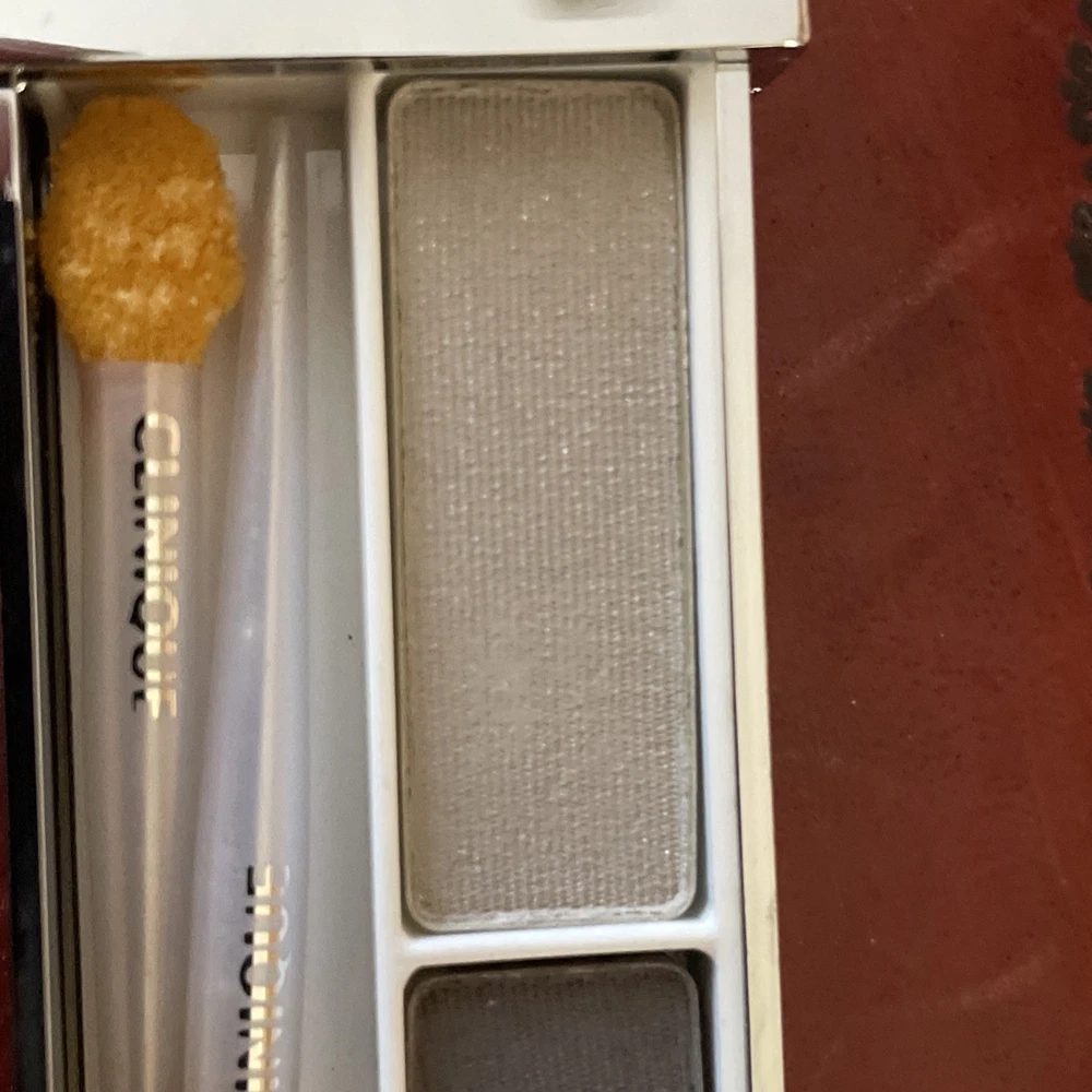 We have available for purchase a Clinique pair of shades eye shadow duo new in box. It has a net weight of .12 oz and 3.4g. Grey on Grey duo comes in the silver slide compact and you will need to replace applicators. There is no expiration date. This had a code of 608E-04. This is new old stock with possibly discontinued colors. We are not affiliated with this company and purchase our items through estates. Please ask all questions before purchasing items. Look carefully at photos as they are an important part of the description. We will provide free priority shipping on these items. Combined shipping is available, please wait for a combined invoice to be mailed to you. There are no returns on these items. Do no bid unless you agree with our terms.