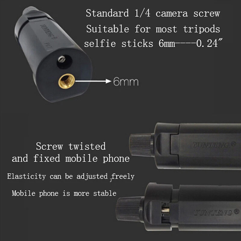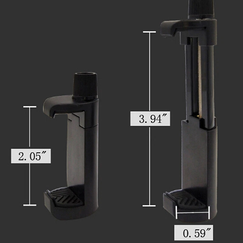 Description: Mount your smartphone or mobile device to any standard tripod with this Tripod Mount Holder. The Tripod Mount is small enough to travel with you wherever life takes you. Once youve attached the Tripod Mount to your tripod, just pop in your smartphone or mobile device and youre ready to go! Its quick access mount lets you instantly swap devices. Features: Silicone on both sides of the Clip for better protection of your phone Easy to install and provides a secure and stable support for your phone. Universal screw thread at the bottom for attaching this bracket to any regular sized Color :Black Clip Range:5.3-10.5cm(2.09"-4.13") Extendable (Used for many Brand Mobile Phones). Install on tripod /monopod any device with 0.24" thread Package Included: 1 x Clip Holder(Not include Tripod Mount) On Dec 5, 2024 at 12:01:38 PST, seller added the following information: