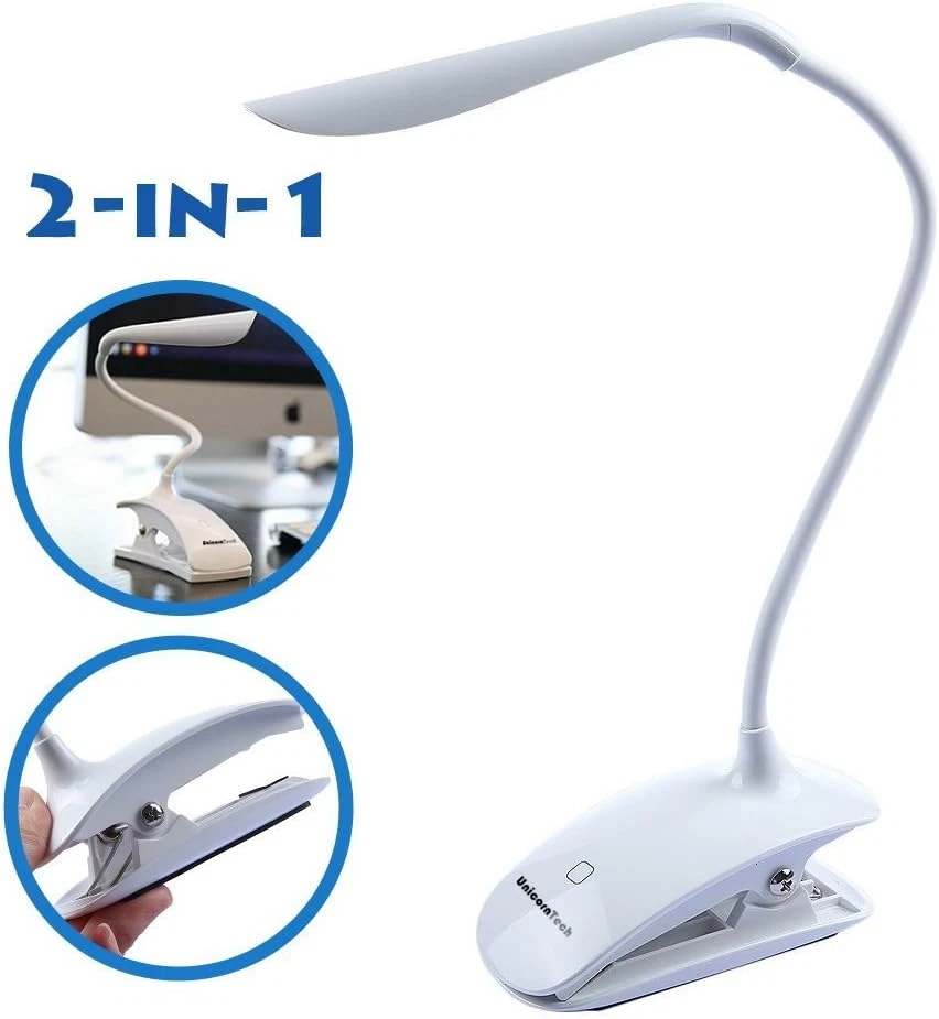 Clip Desk Lamp Table LED Bulb Lamps Set USB Outlet White Modern Shade Gooseneck